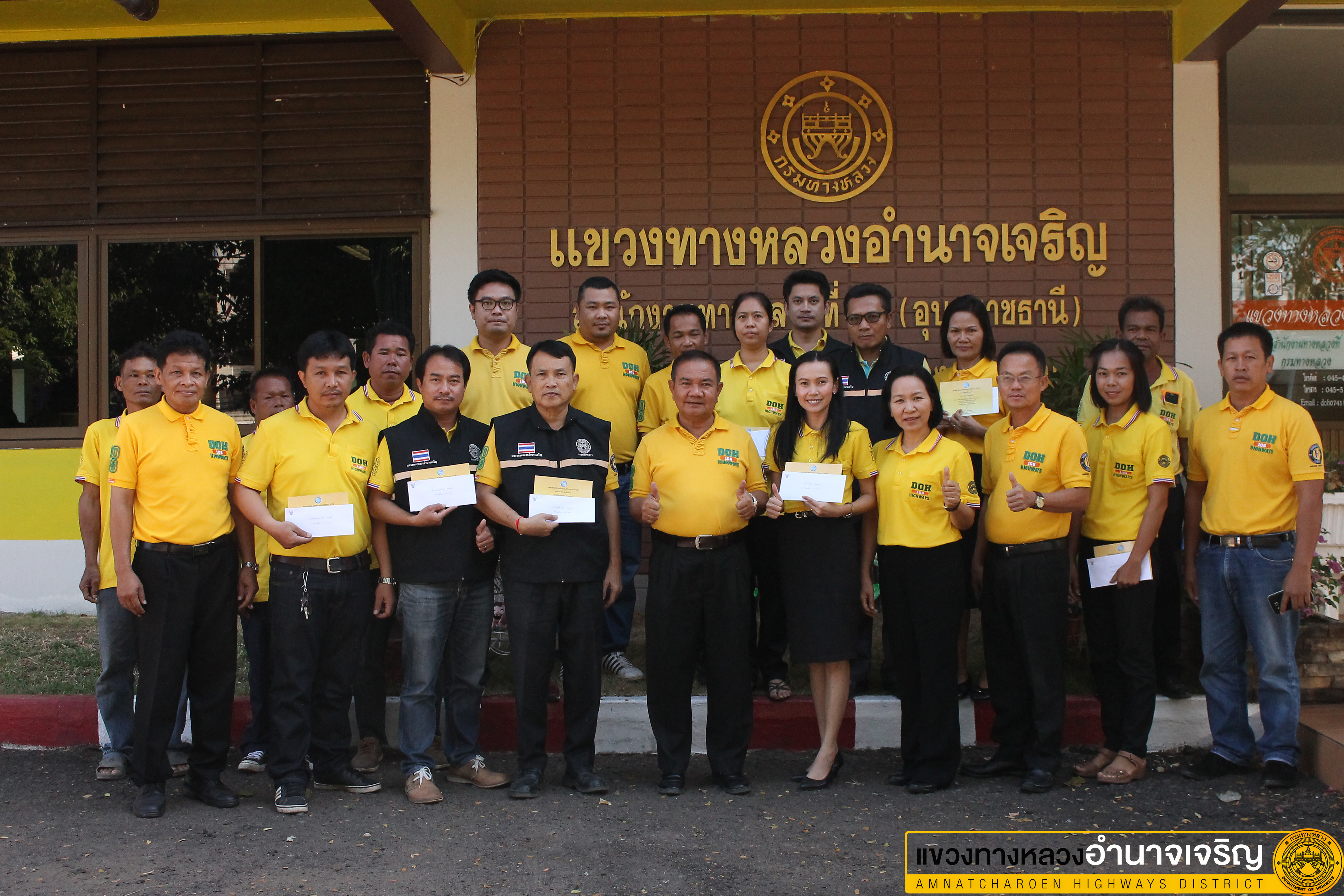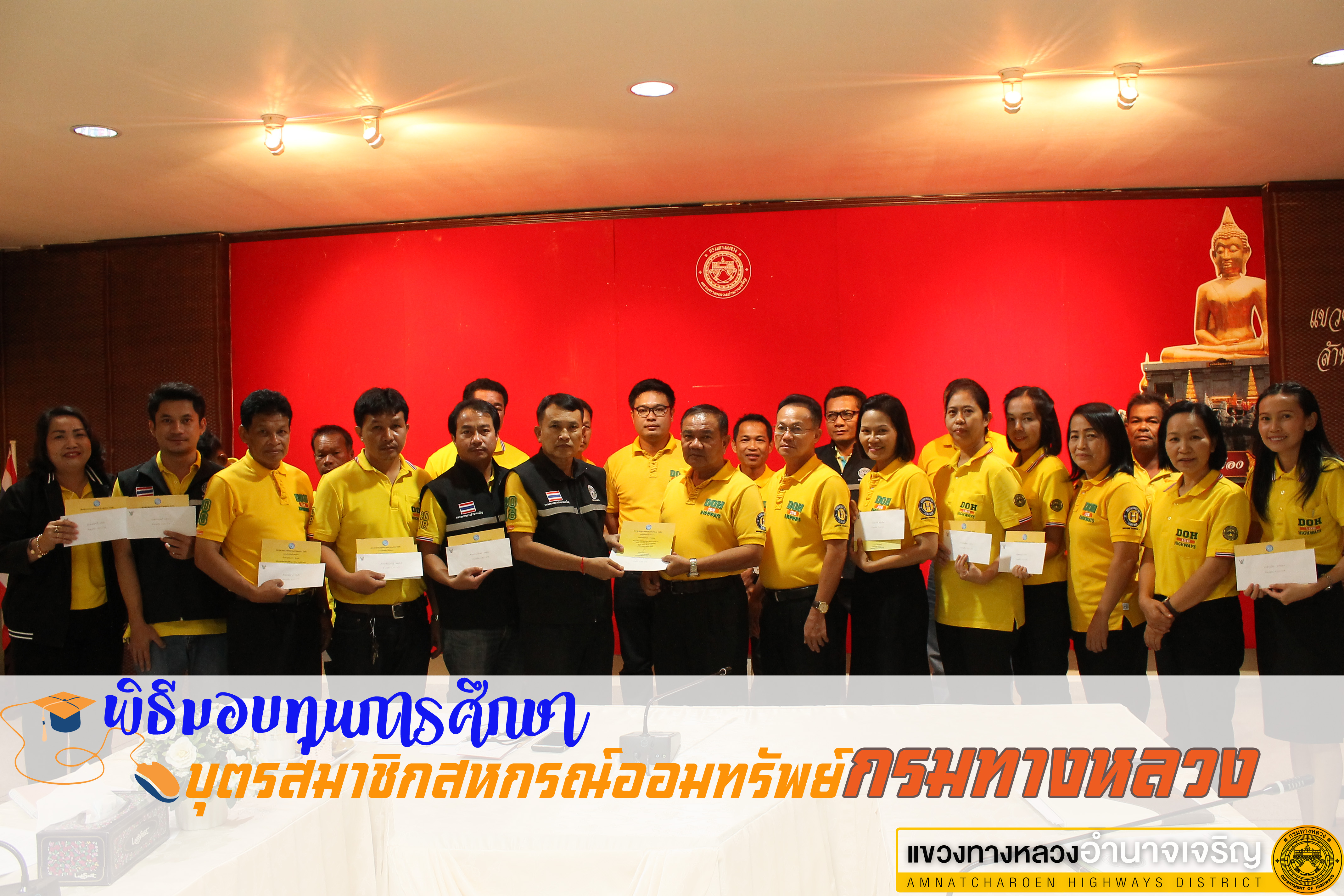 นายพิตรพิบูล ธนเกียรติโยธิน ผู้อำนวยการแขวงทางหลวงอำนาจเจริญ มอบทุนการศึกษาบุตรสมาชิกสหกรณ์ออมทรัพย์กรมทางหลวง จำกัด ประจำปี 2561ณ ห้องประชุมแขวงทางหลวงอำนาจเจริญ เมื่อวันที่ 26 ธันวาคม 2561