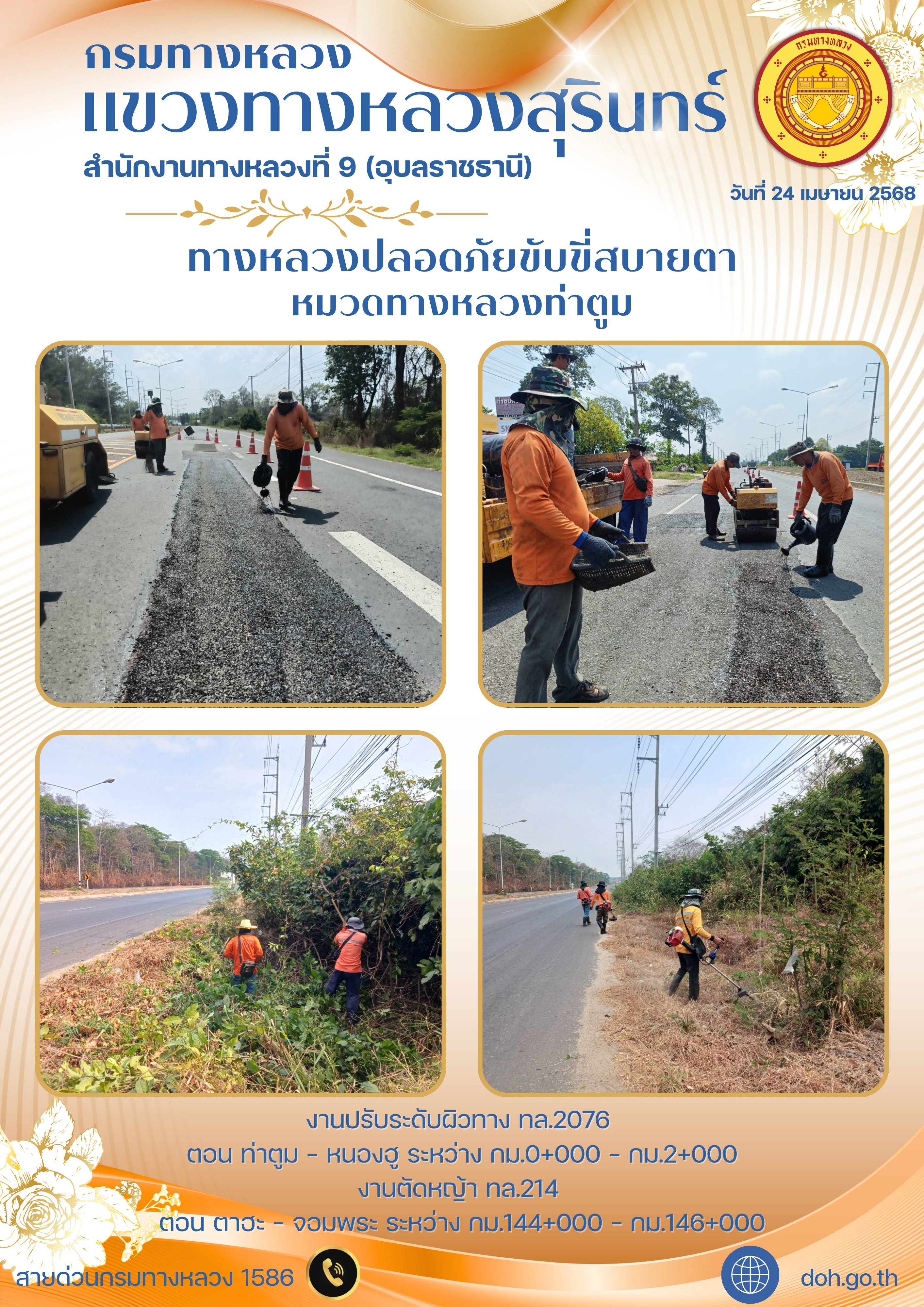 ทางหลวงปลอยภัย ขับขี่สบายตา 24 เมษายน 2568 |