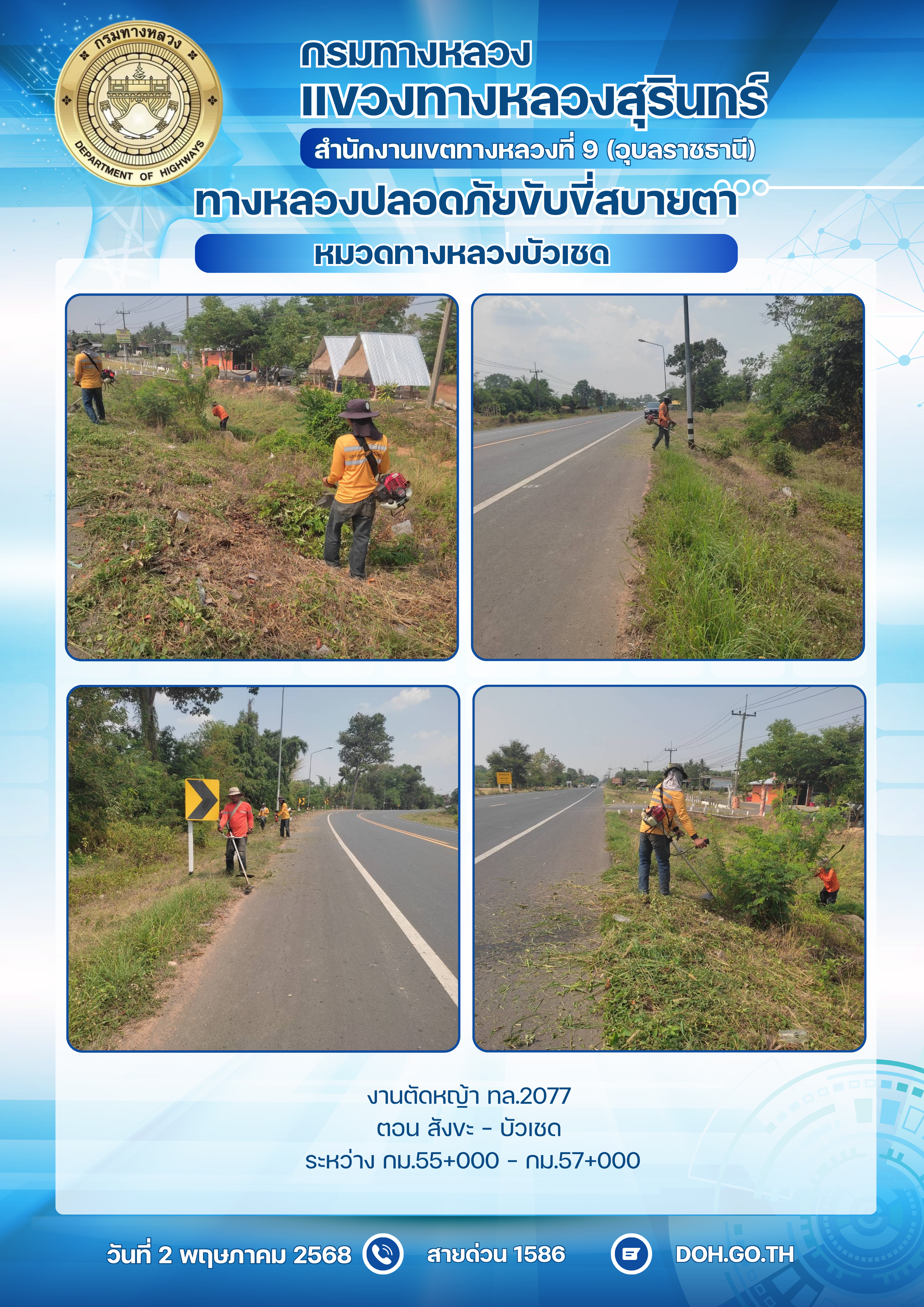 ทางหลวงปลอยภัย ขับขี่สบายตา 2 พฤษภาคม 2568 |