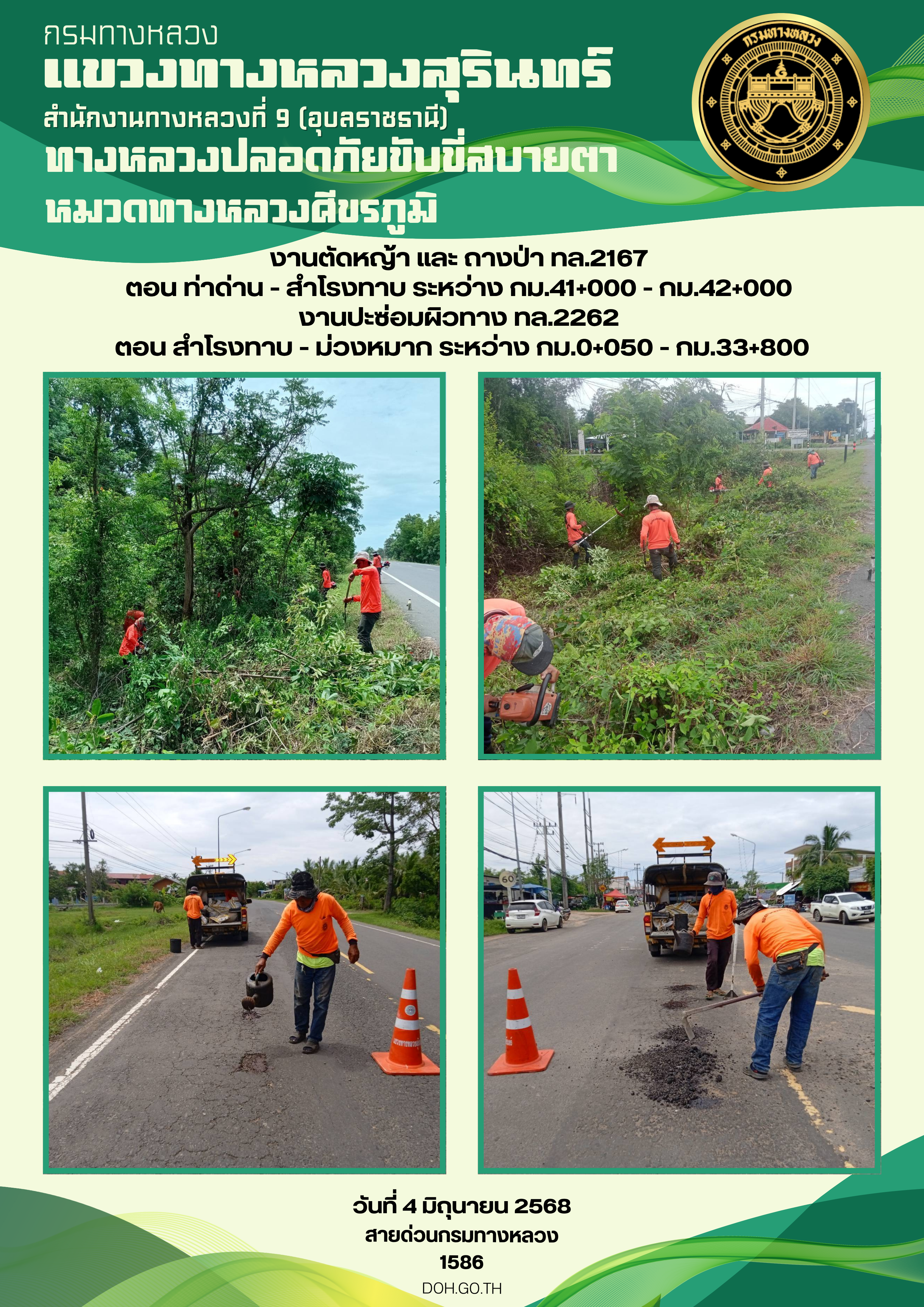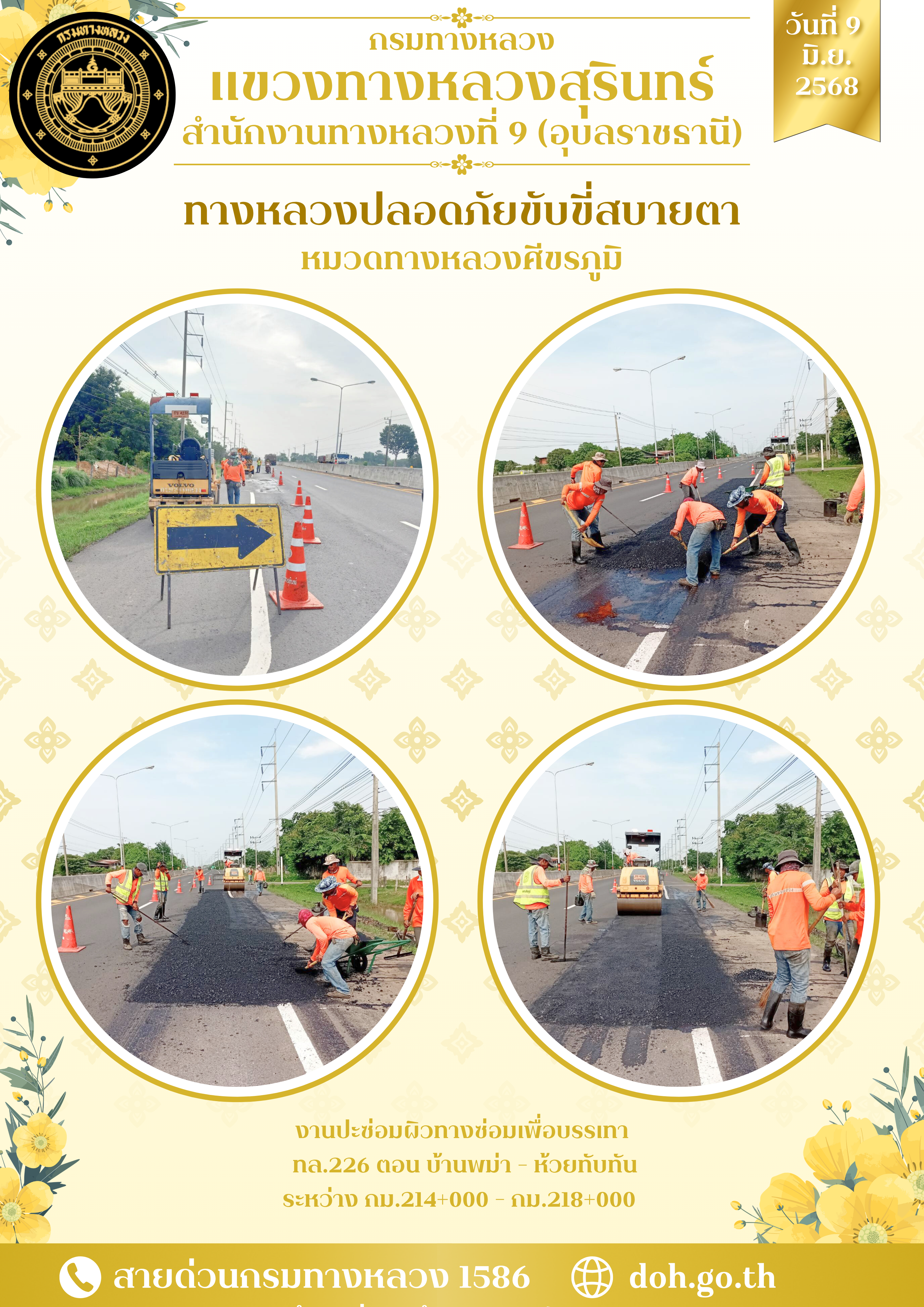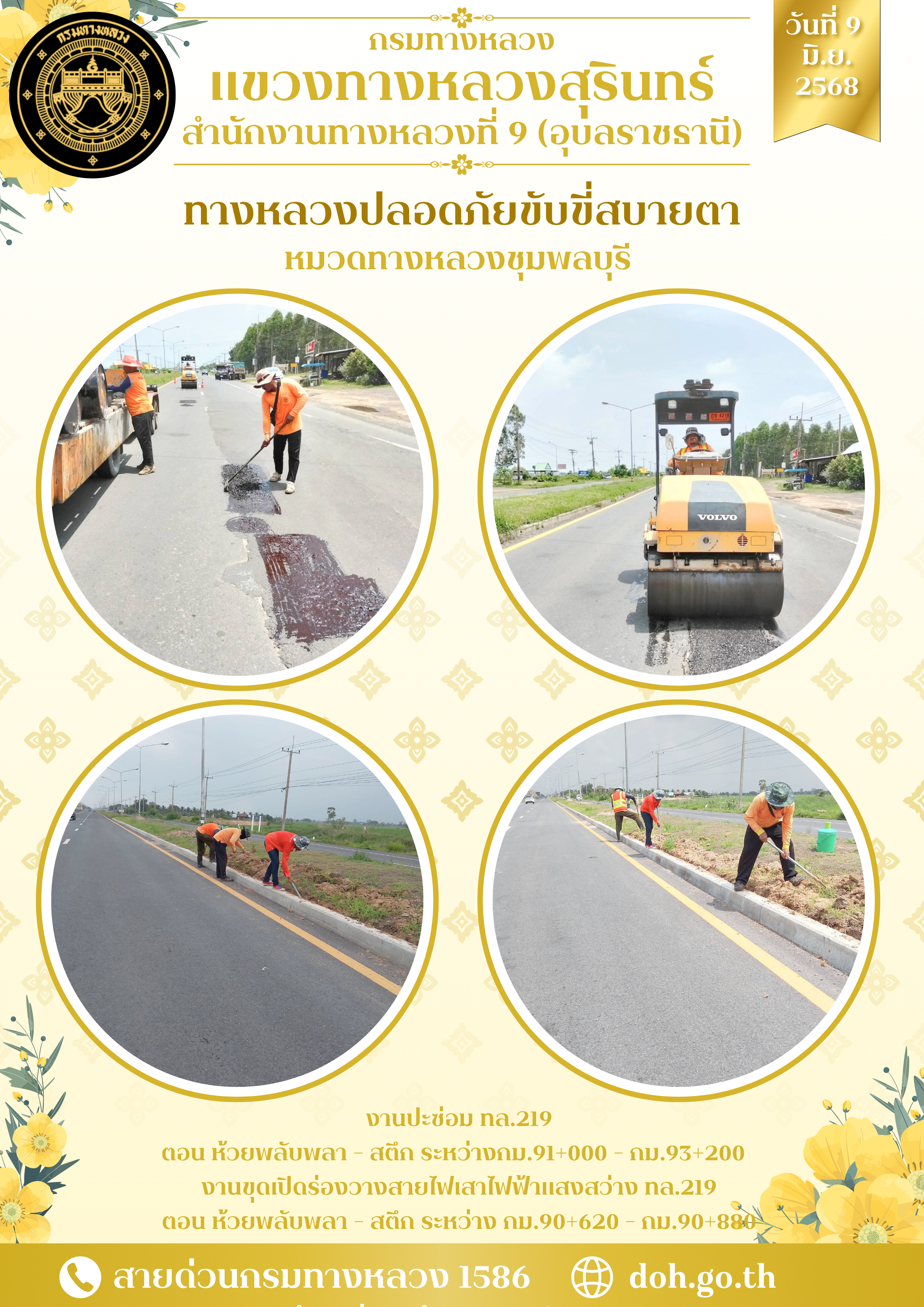 ทางหลวงปลอยภัย ขับขี่สบายตา 9 มิถุนายน 2568 |