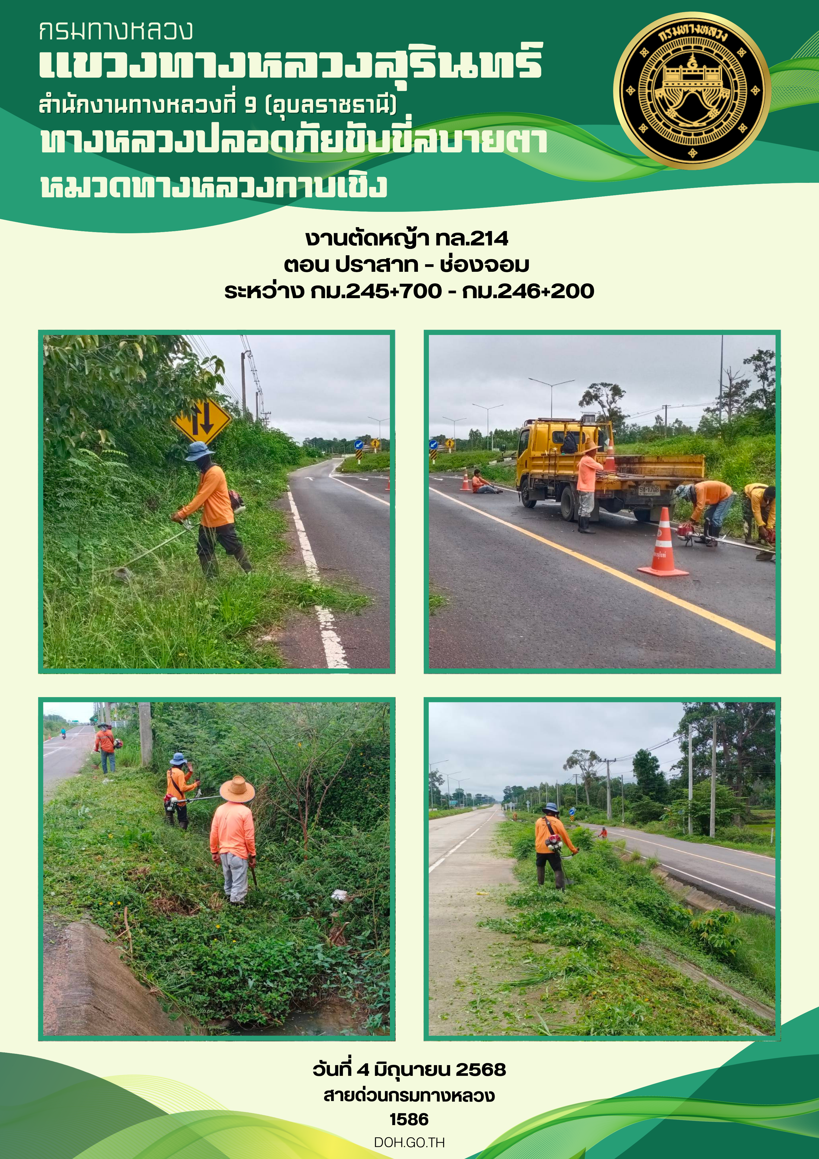 ทางหลวงปลอยภัย ขับขี่สบายตา 4 มิถุนายน 2568 |