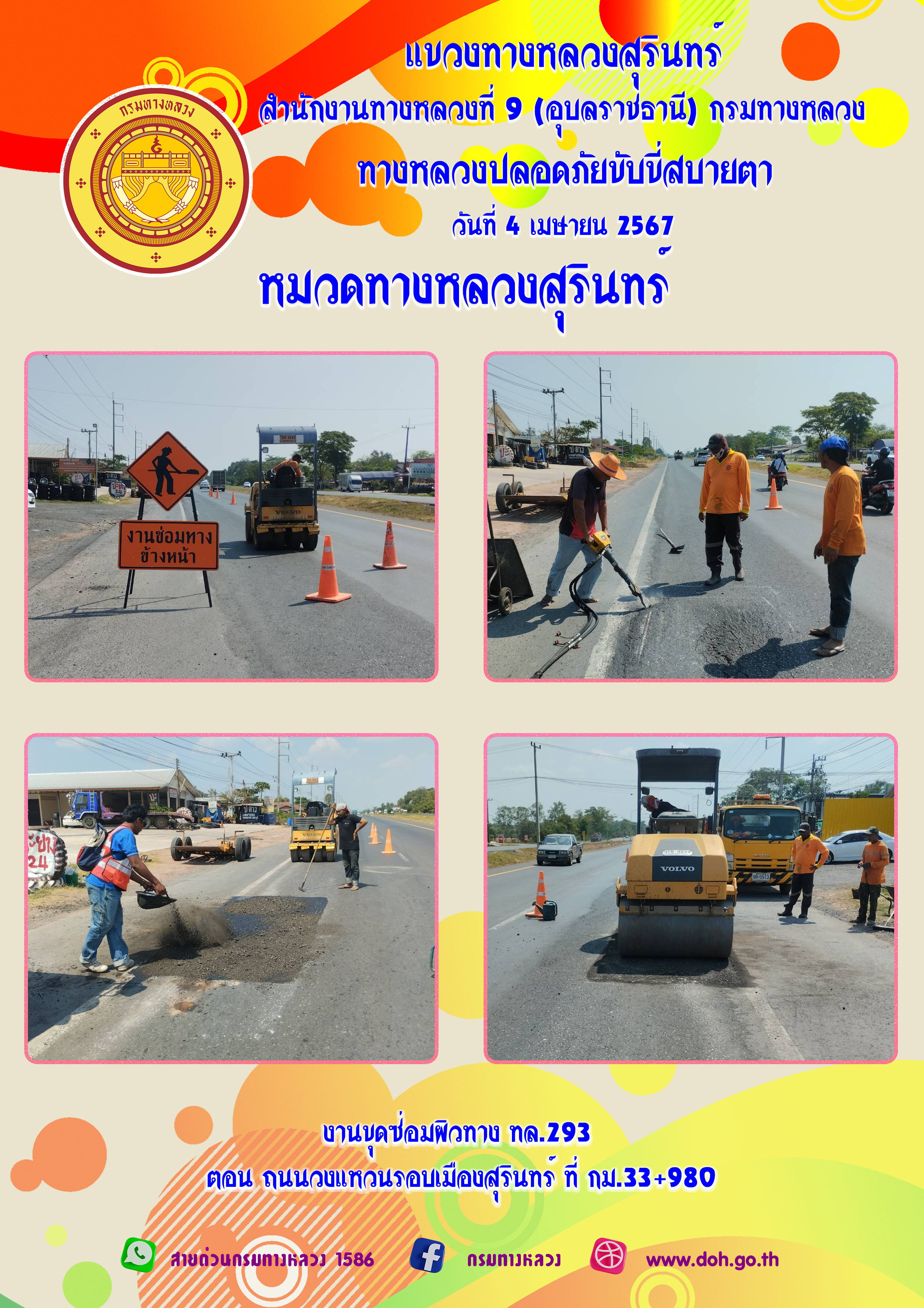 ทางหลวงปลอยภัย ขับขี่สบายตา 4 เมษายน 2567 |