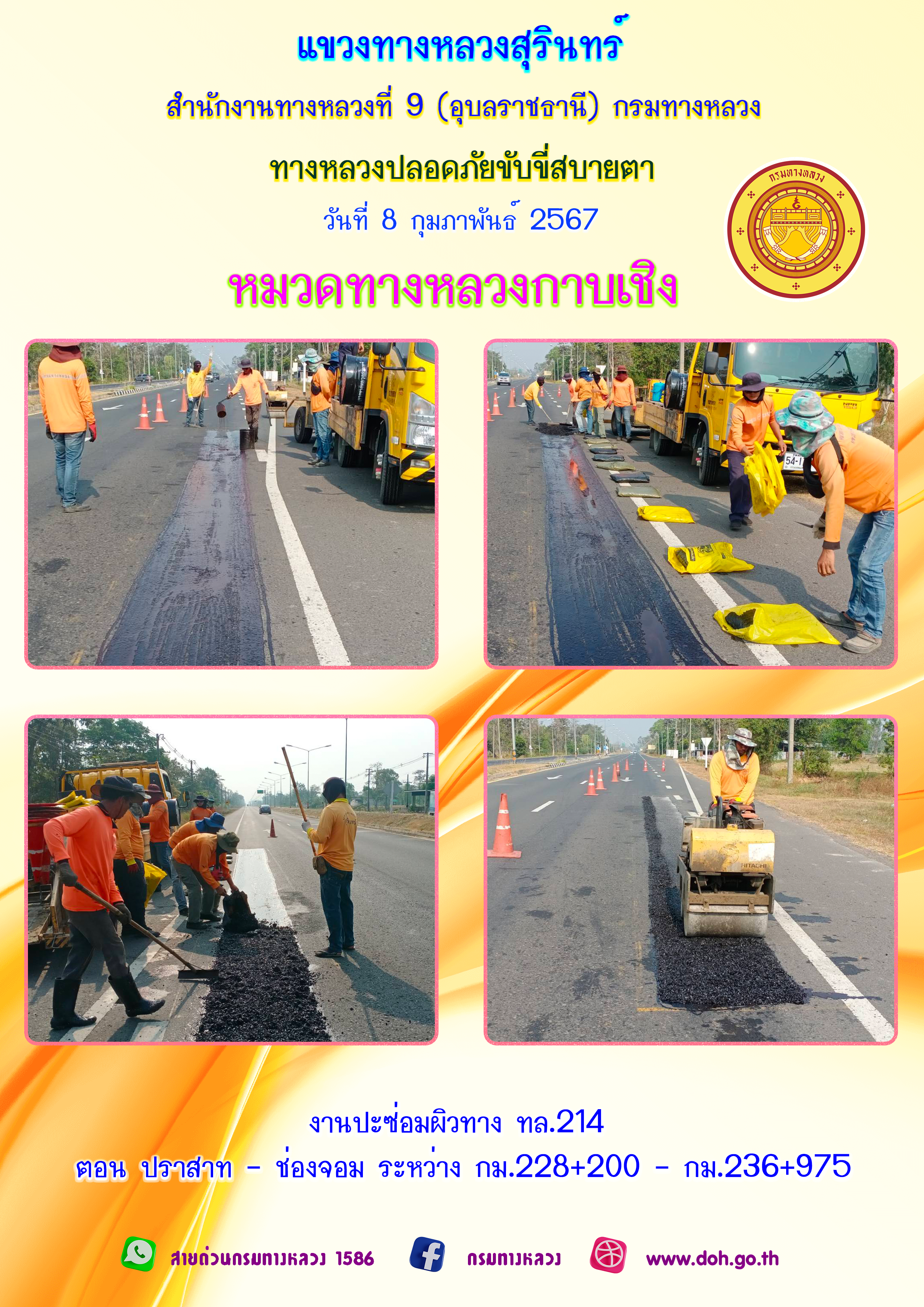 ทางหลวงปลอยภัย ขับขี่สบายตา 8 กุมภาพันธ์ 2567 |