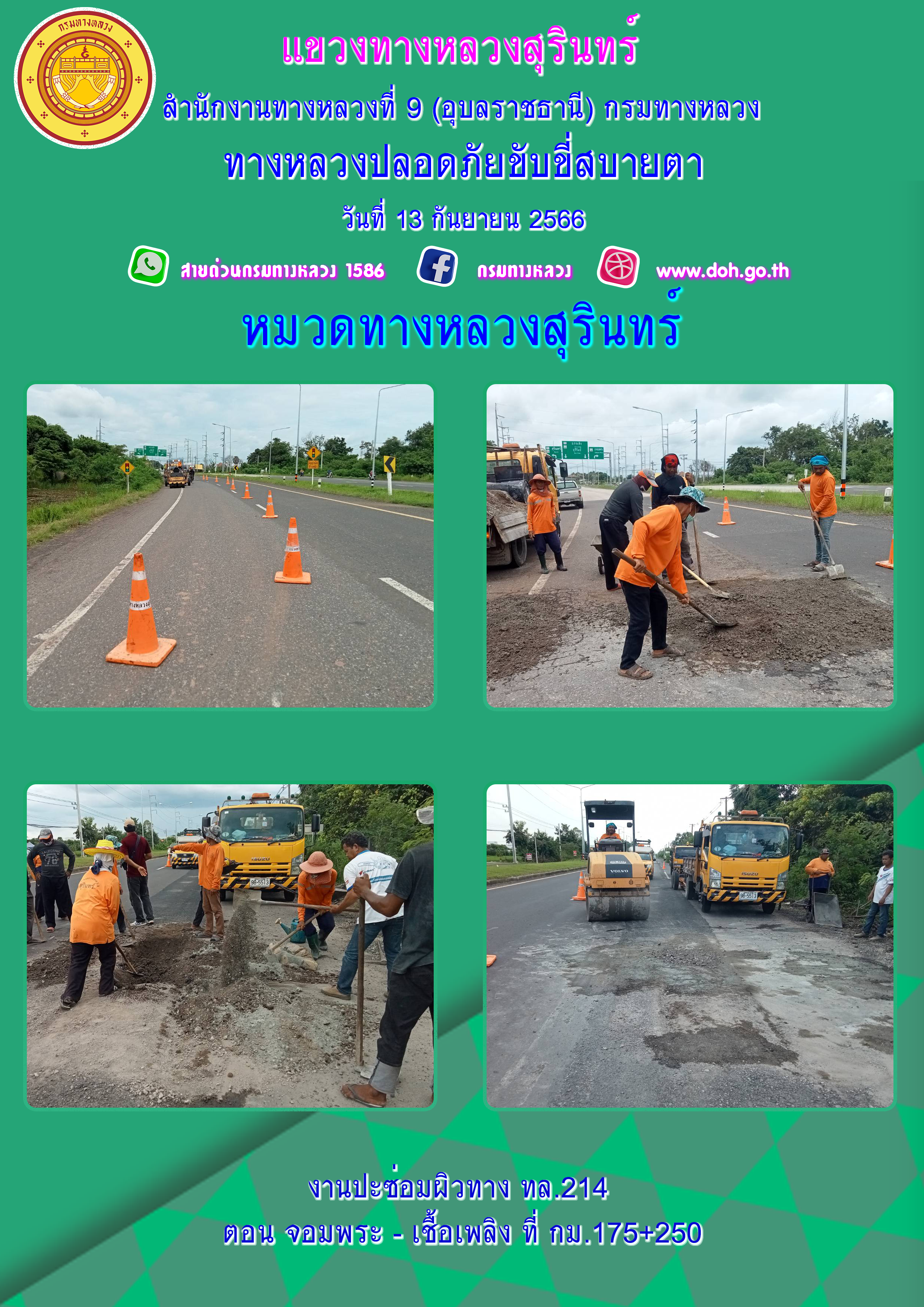 ทางหลวงปลอยภัย ขับขี่สบายตา 13 กันยายน 2566 |