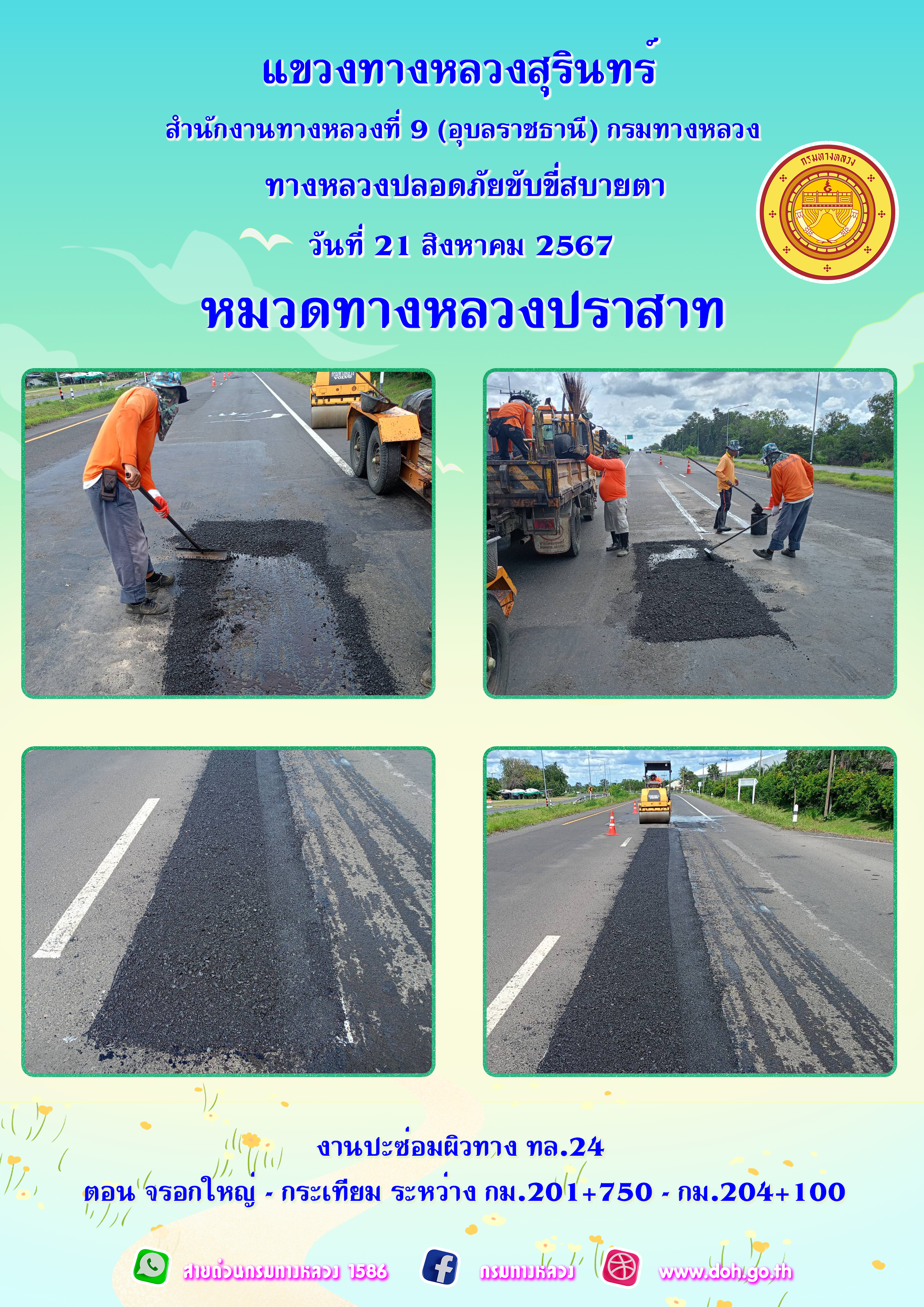 ทางหลวงปลอยภัย ขับขี่สบายตา 9 สิงหาคม 2567 |