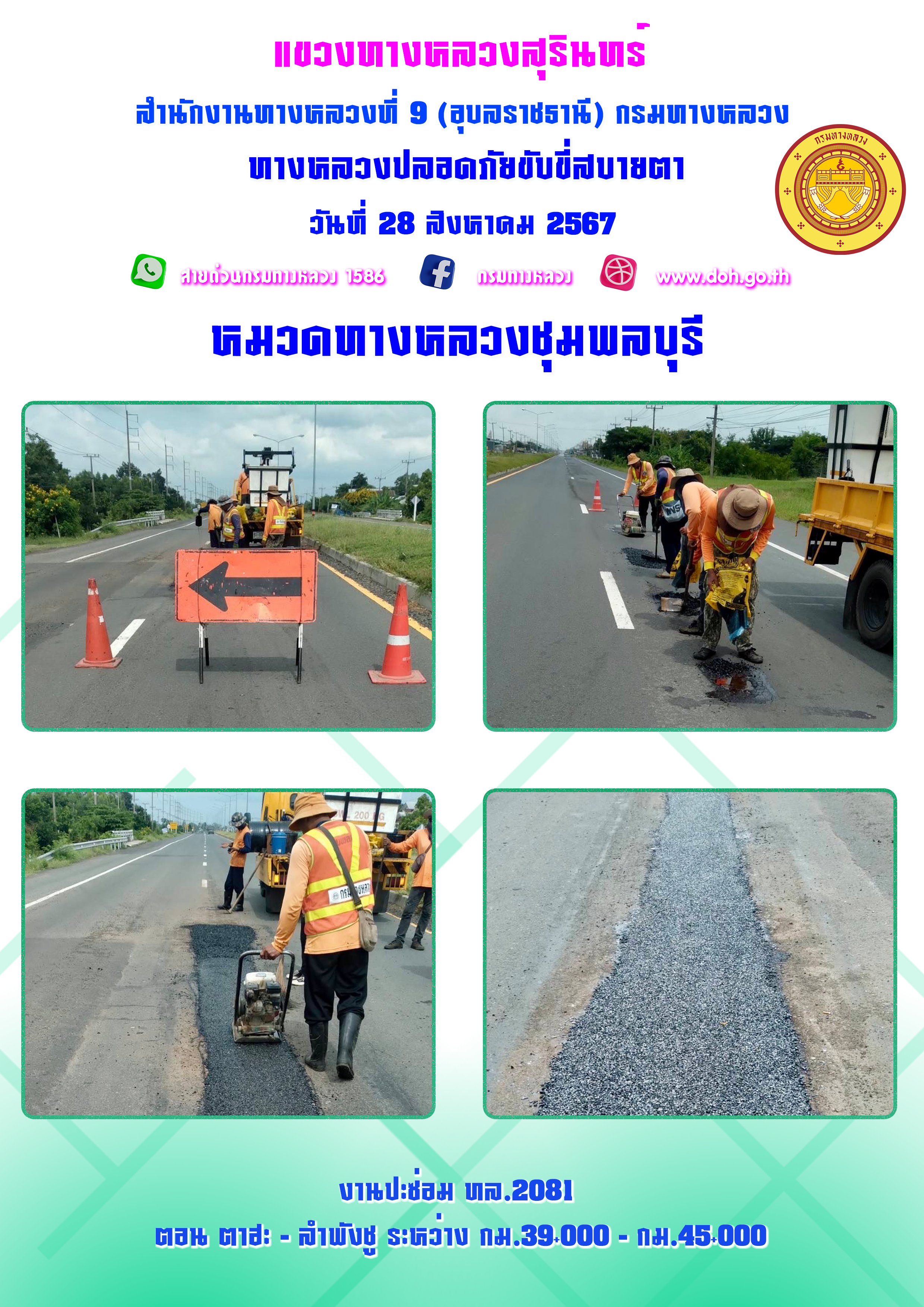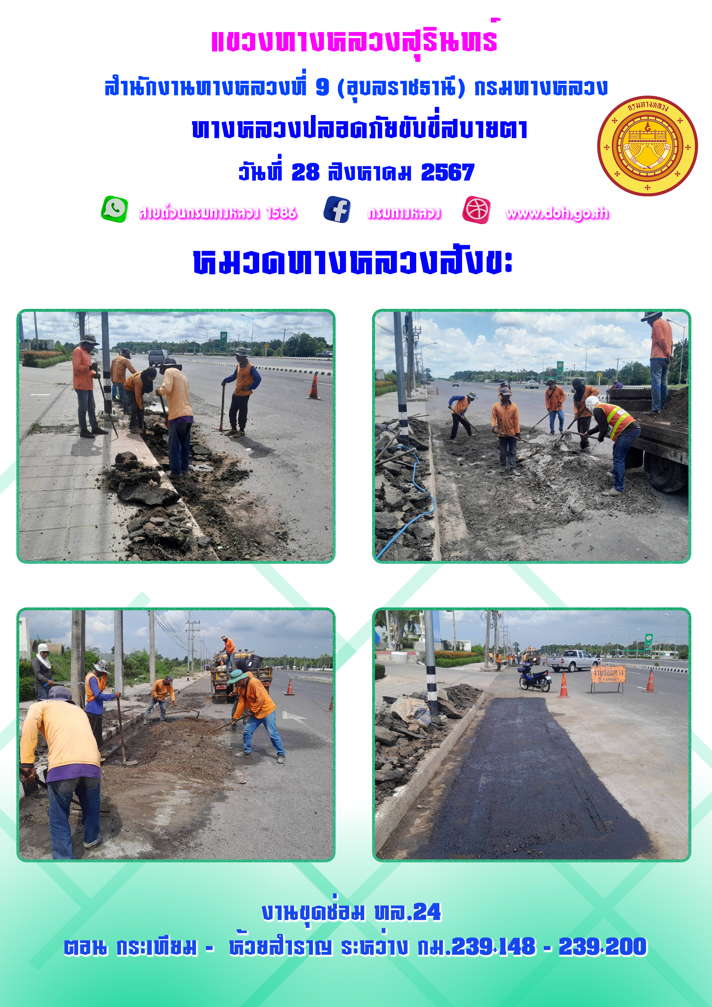 ทางหลวงปลอยภัย ขับขี่สบายตา 28 สิงหาคม 2567 |
