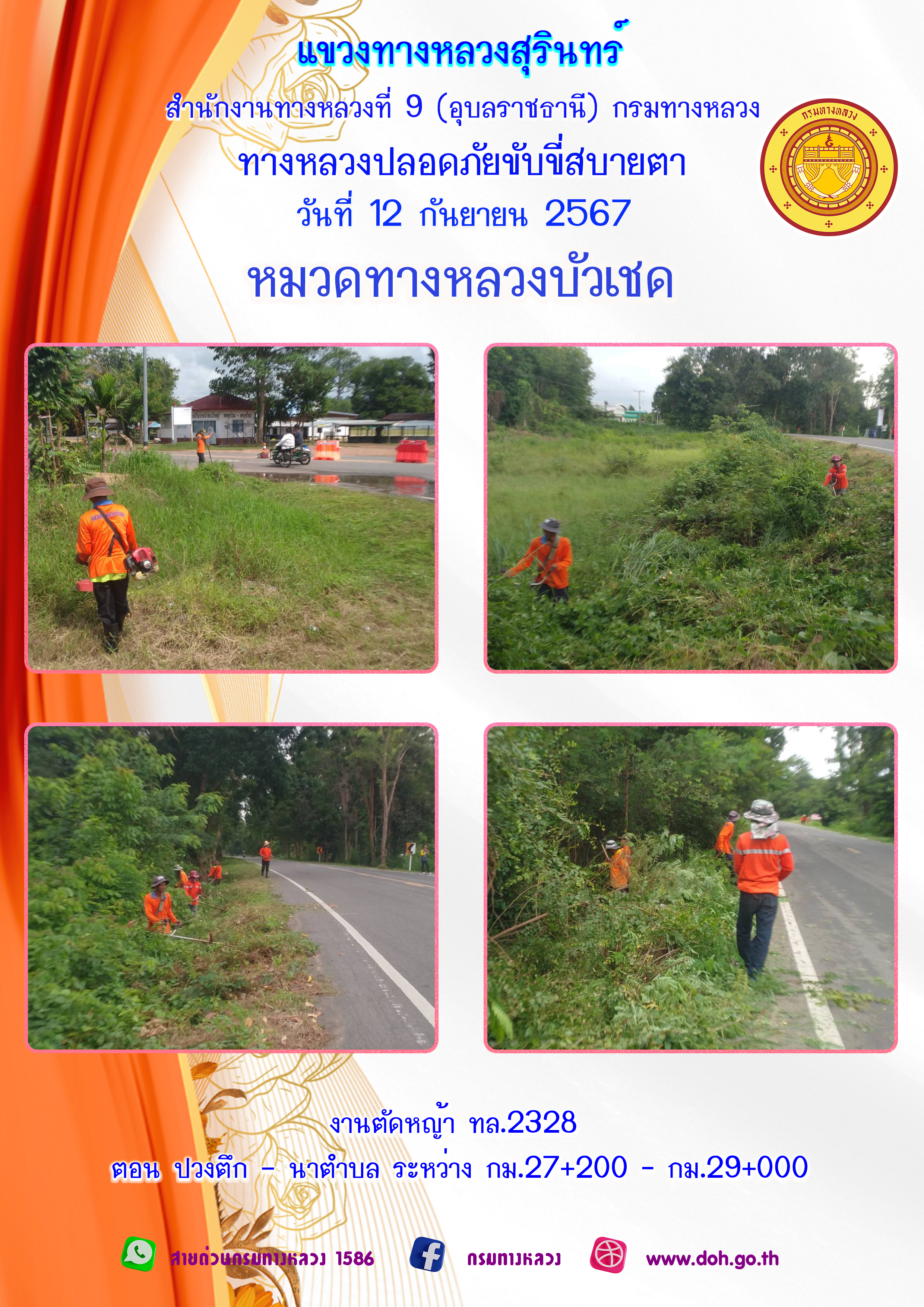 ทางหลวงปลอยภัย ขับขี่สบายตา 9 กันยายน 2567 |