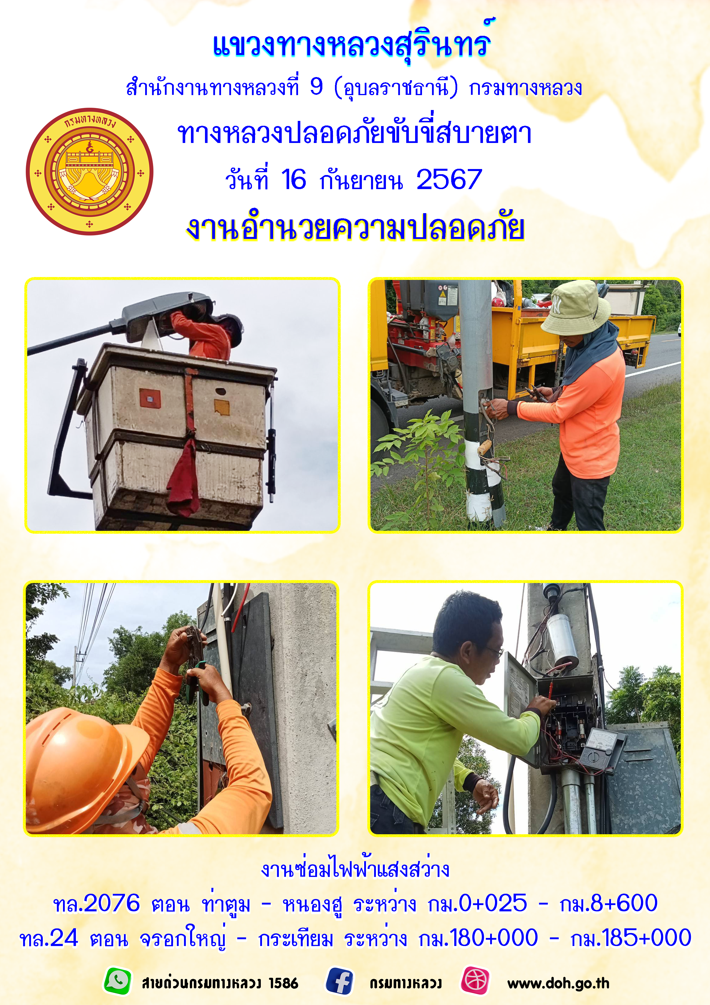 ทางหลวงปลอยภัย ขับขี่สบายตา 2 กันยายน 2567 |