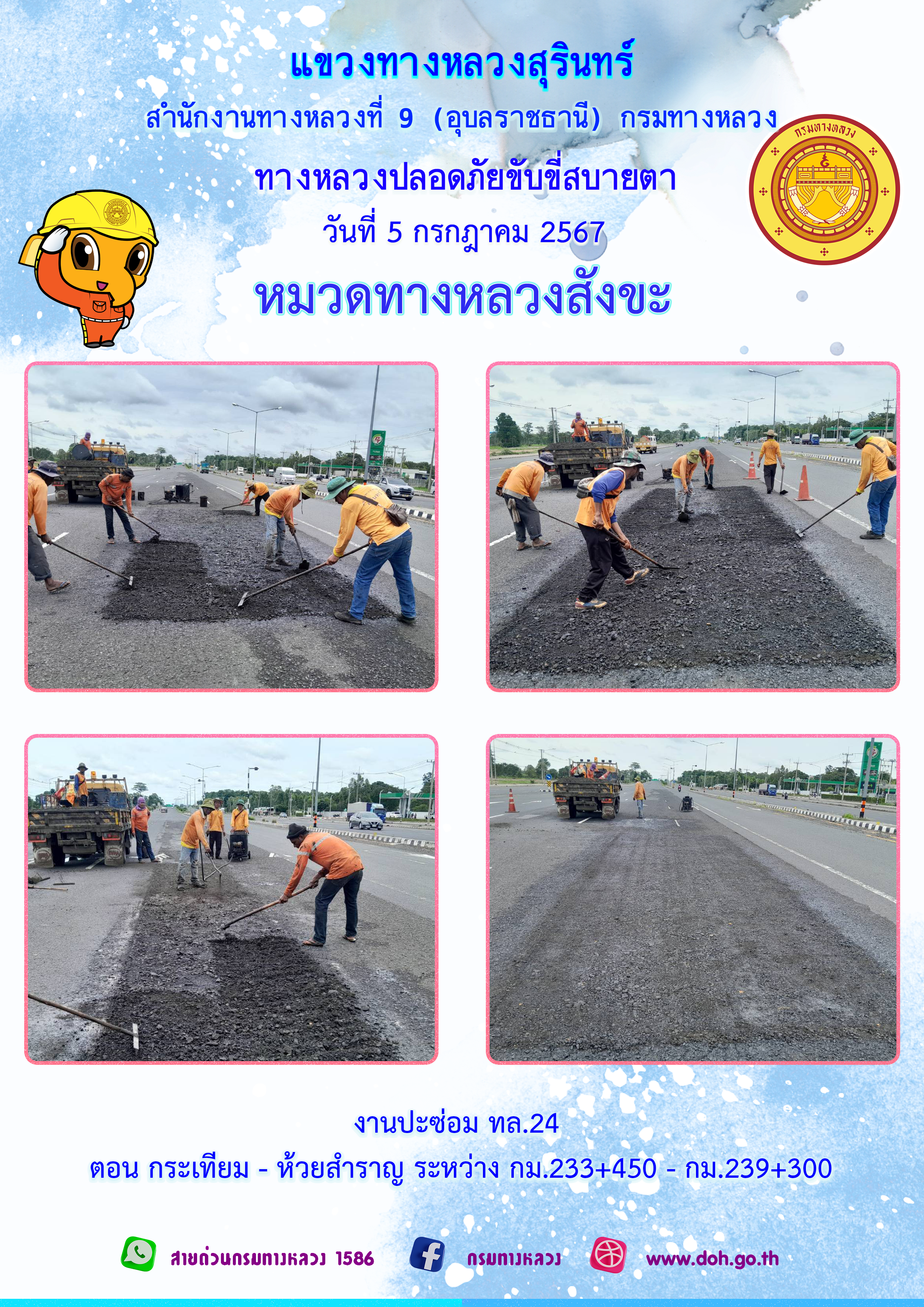 ทางหลวงปลอยภัย ขับขี่สบายตา 1 กรกฎาคม 2567 |