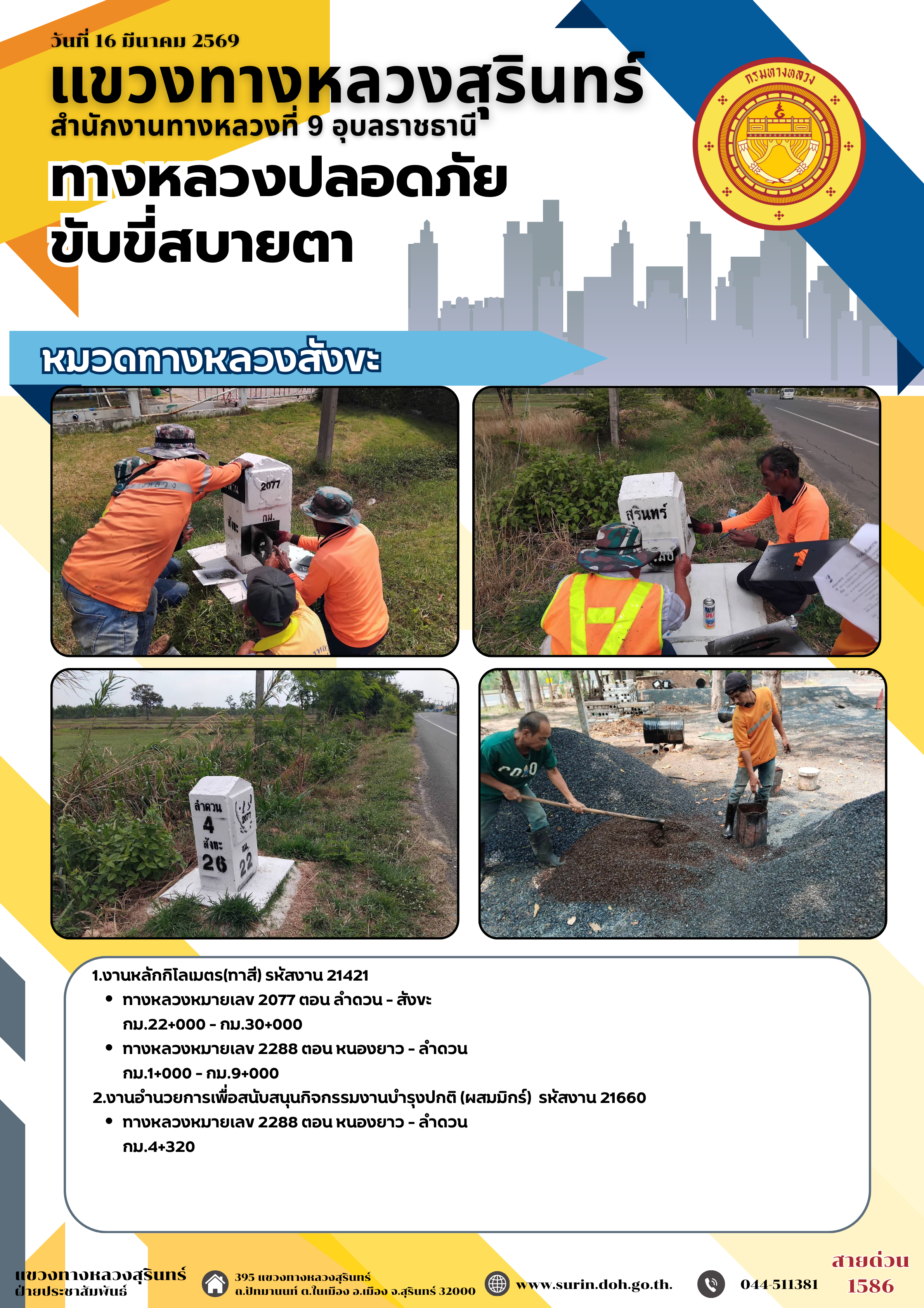 ทางหลวงปลอดภัย ขับขี่สบายตา 16 มีนาคม 2569 |