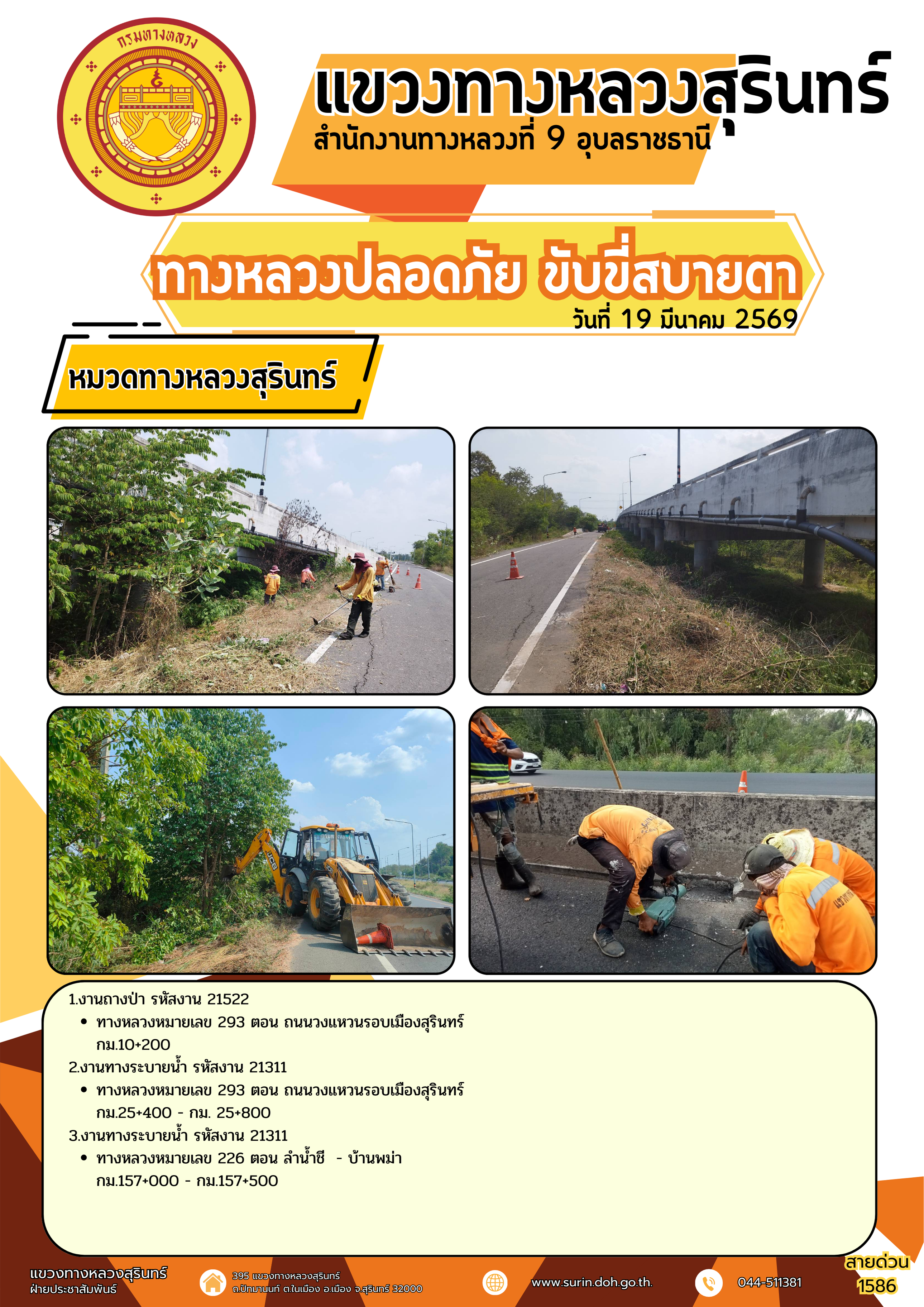 ทางหลวงปลอดภัย ขับขี่สบายตา 19 มีนาคม 2569 |