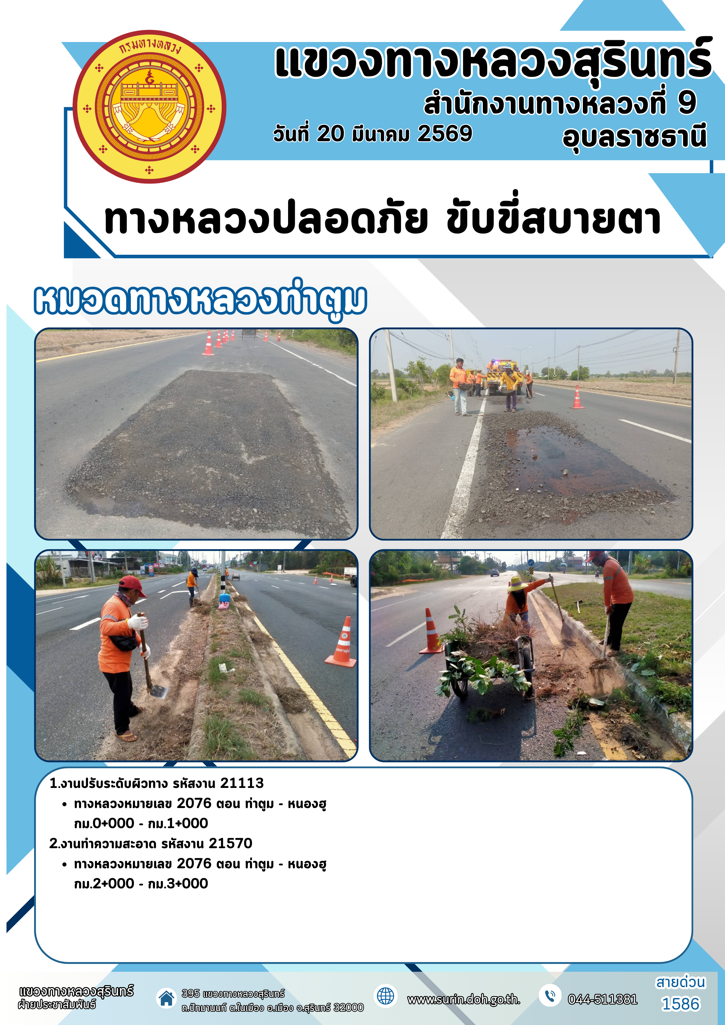 ทางหลวงปลอดภัย ขับขี่สบายตา 20 มีนาคม 2569 |