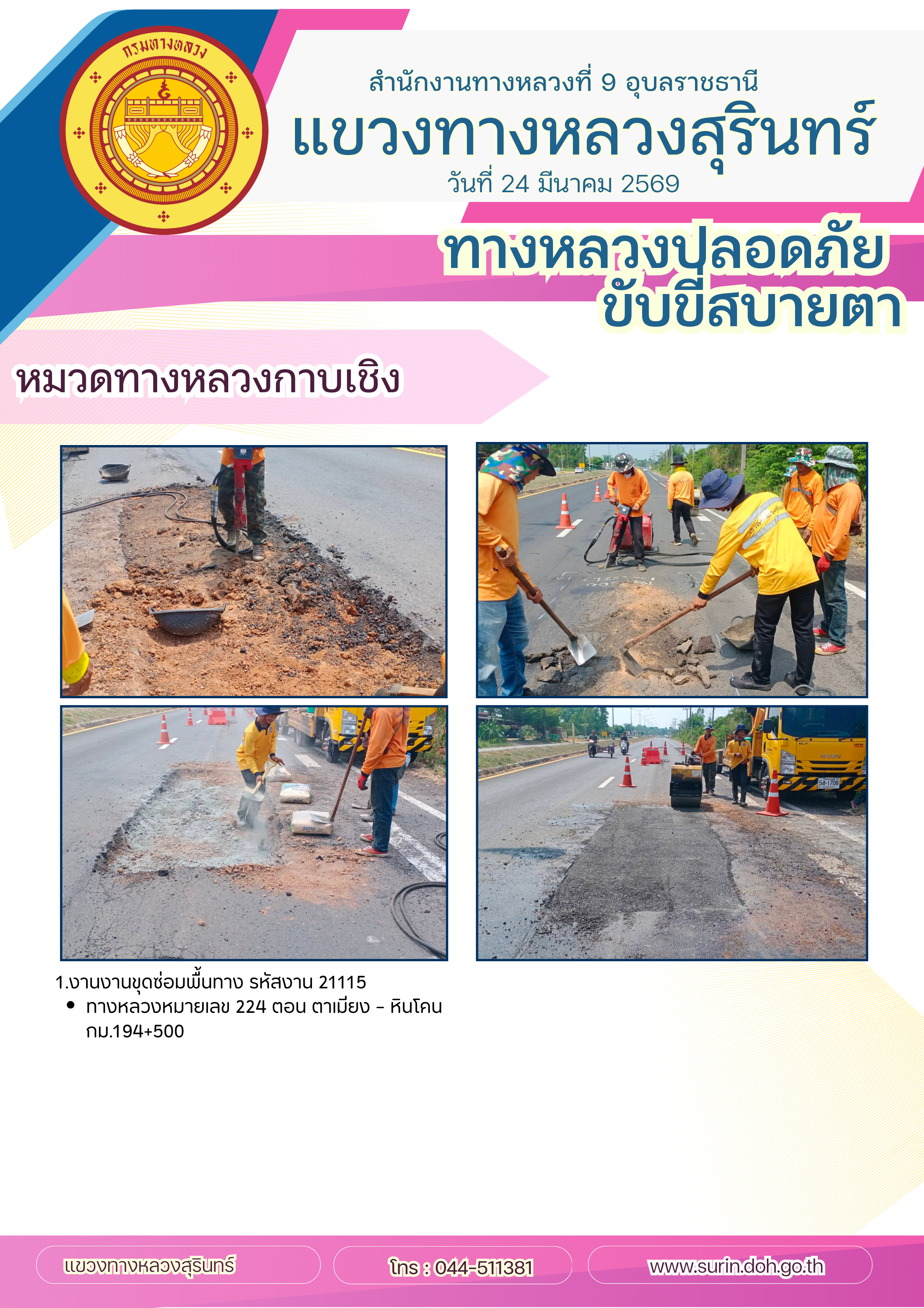 ทางหลวงปลอดภัย ขับขี่สบายตา 24 มีนาคม 2569 |