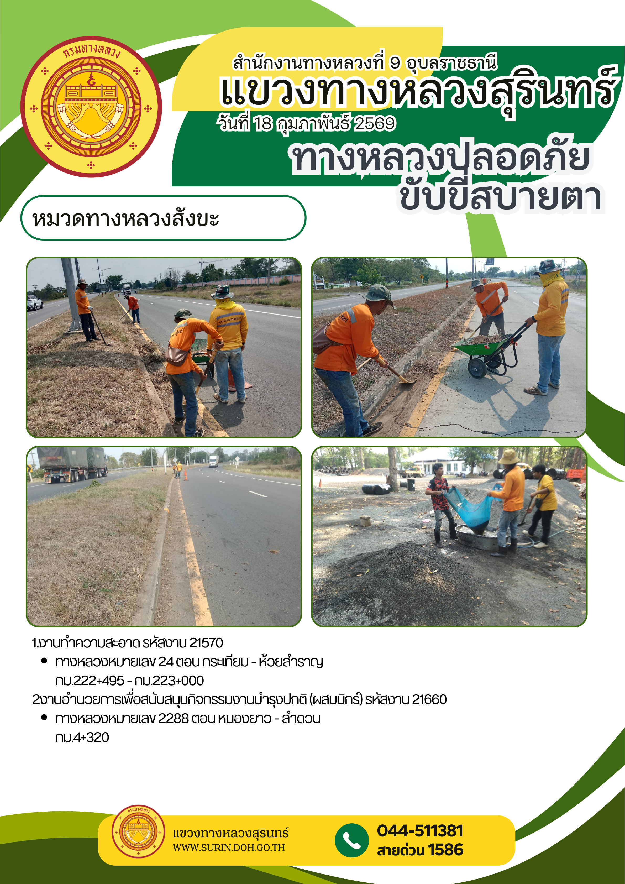 ทางหลวงปลอดภัย ขับขี่สบายตา 18 มีนาคม 2569 |