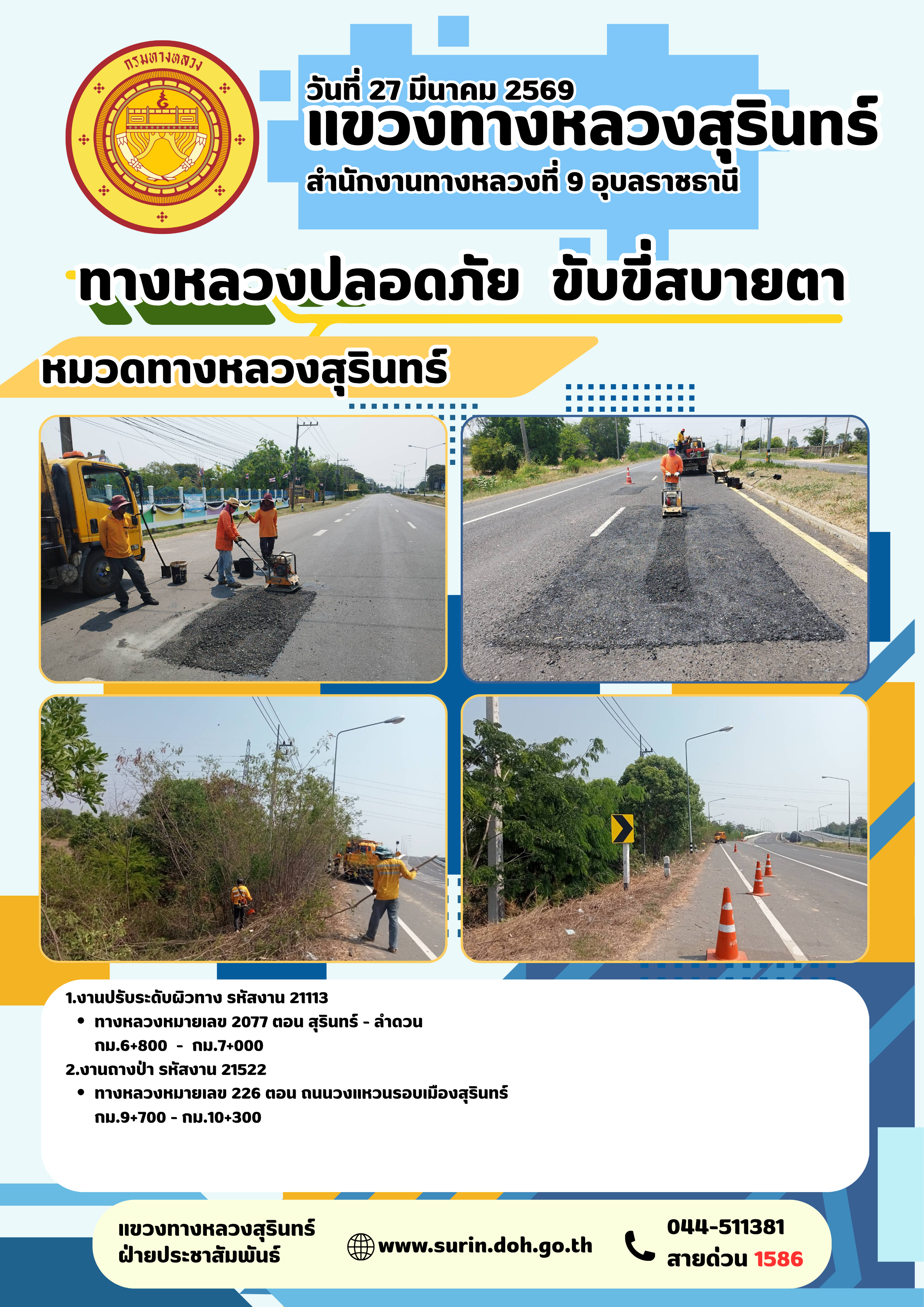 ทางหลวงปลอดภัย ขับขี่สบายตา 27 มีนาคม 2569 |