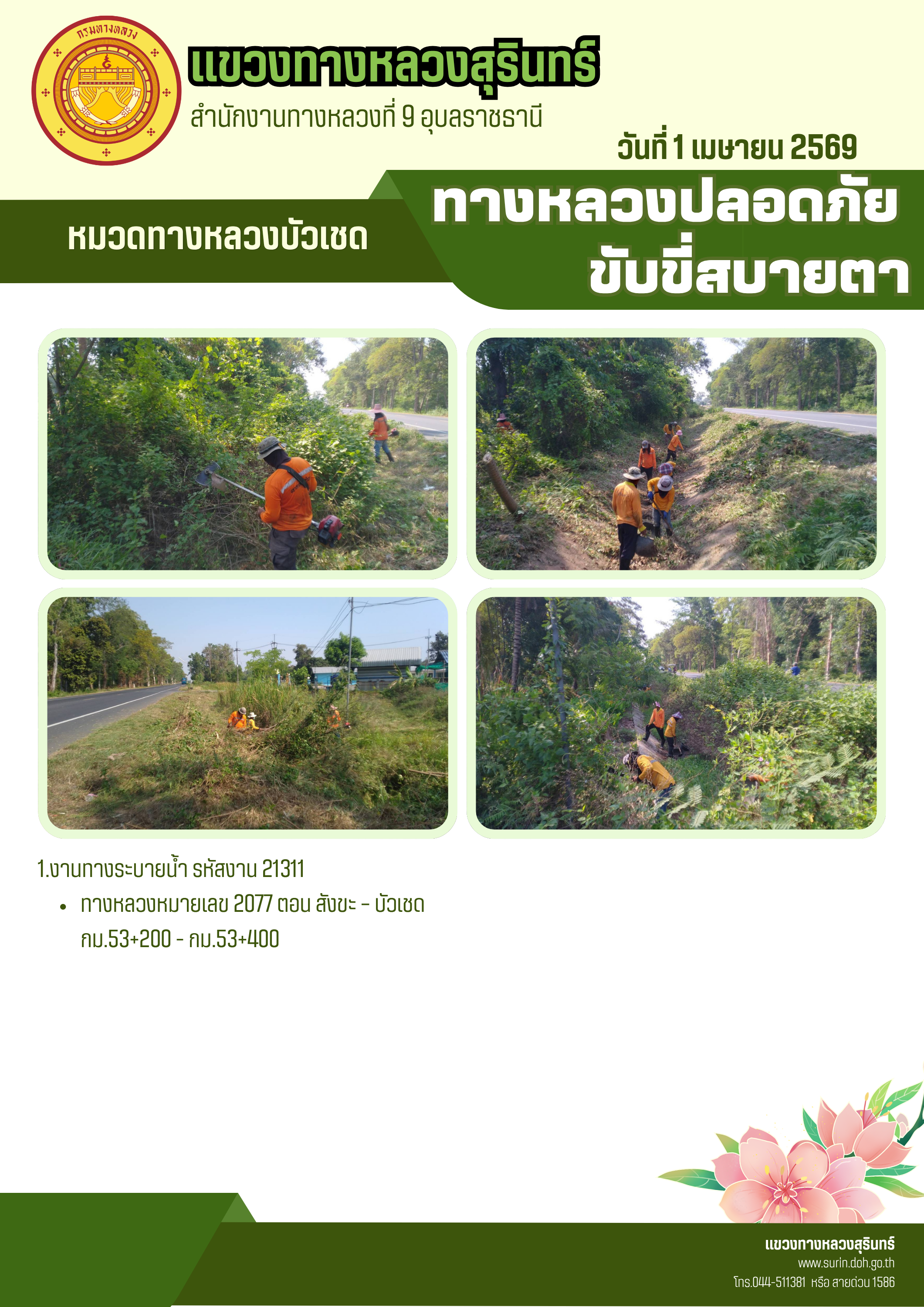 ทางหลวงปลอดภัย ขับขี่สบายตา 1 เมษายน 2569 |