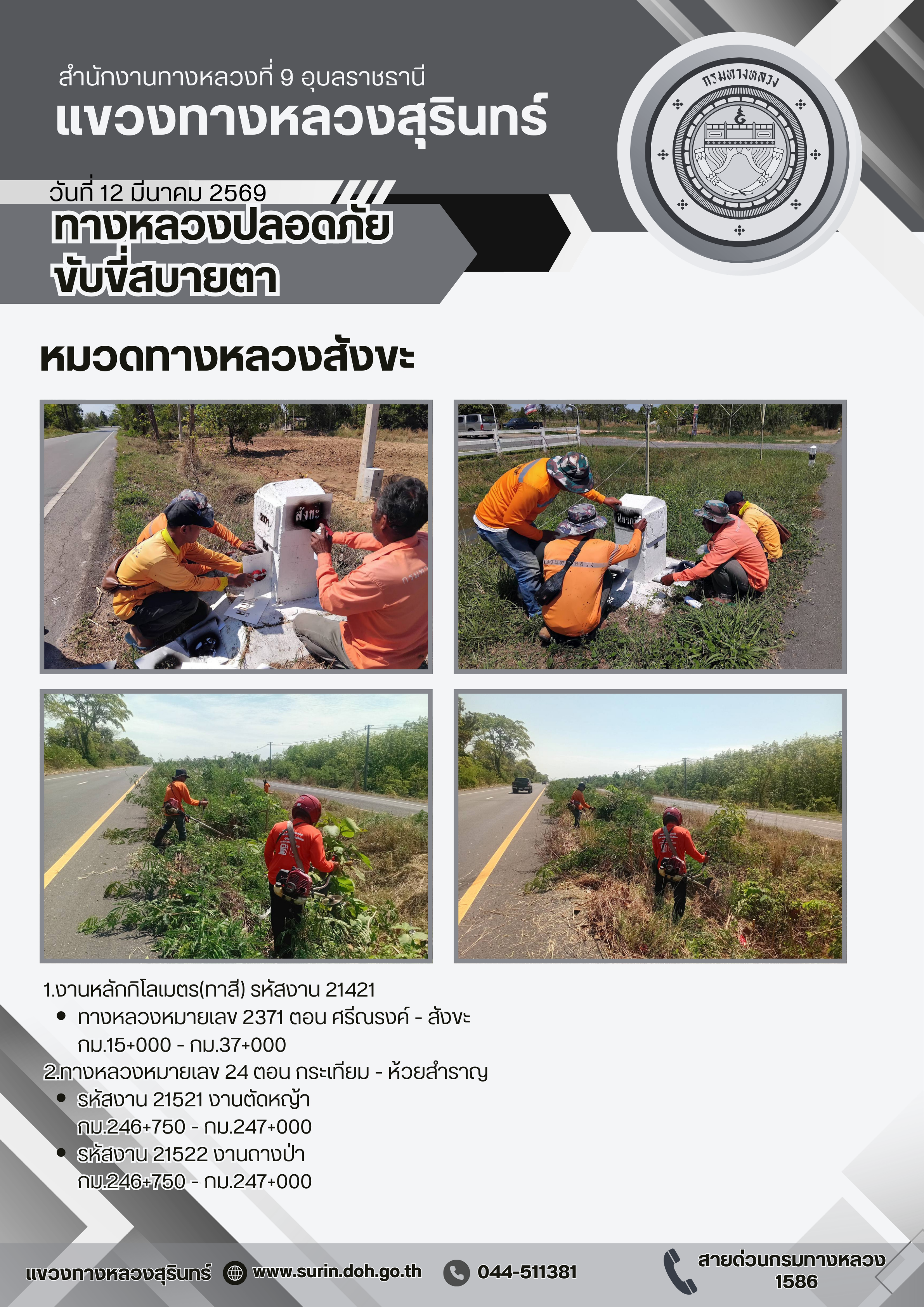 ทางหลวงปลอดภัย ขับขี่สบายตา 12 มีนาคม 2569 |