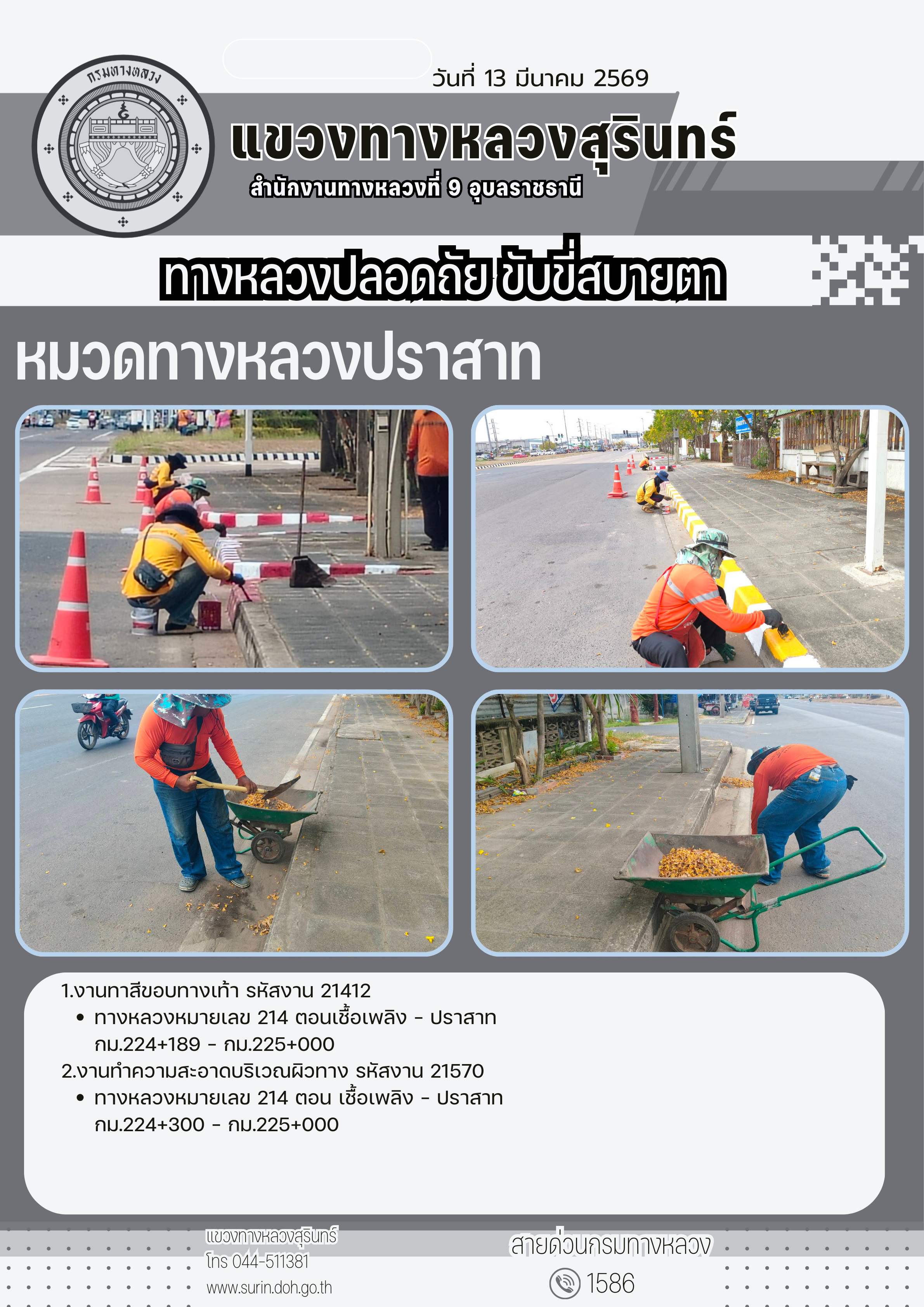 ทางหลวงปลอดภัย ขับขี่สบายตา 13 มีนาคม 2569 |