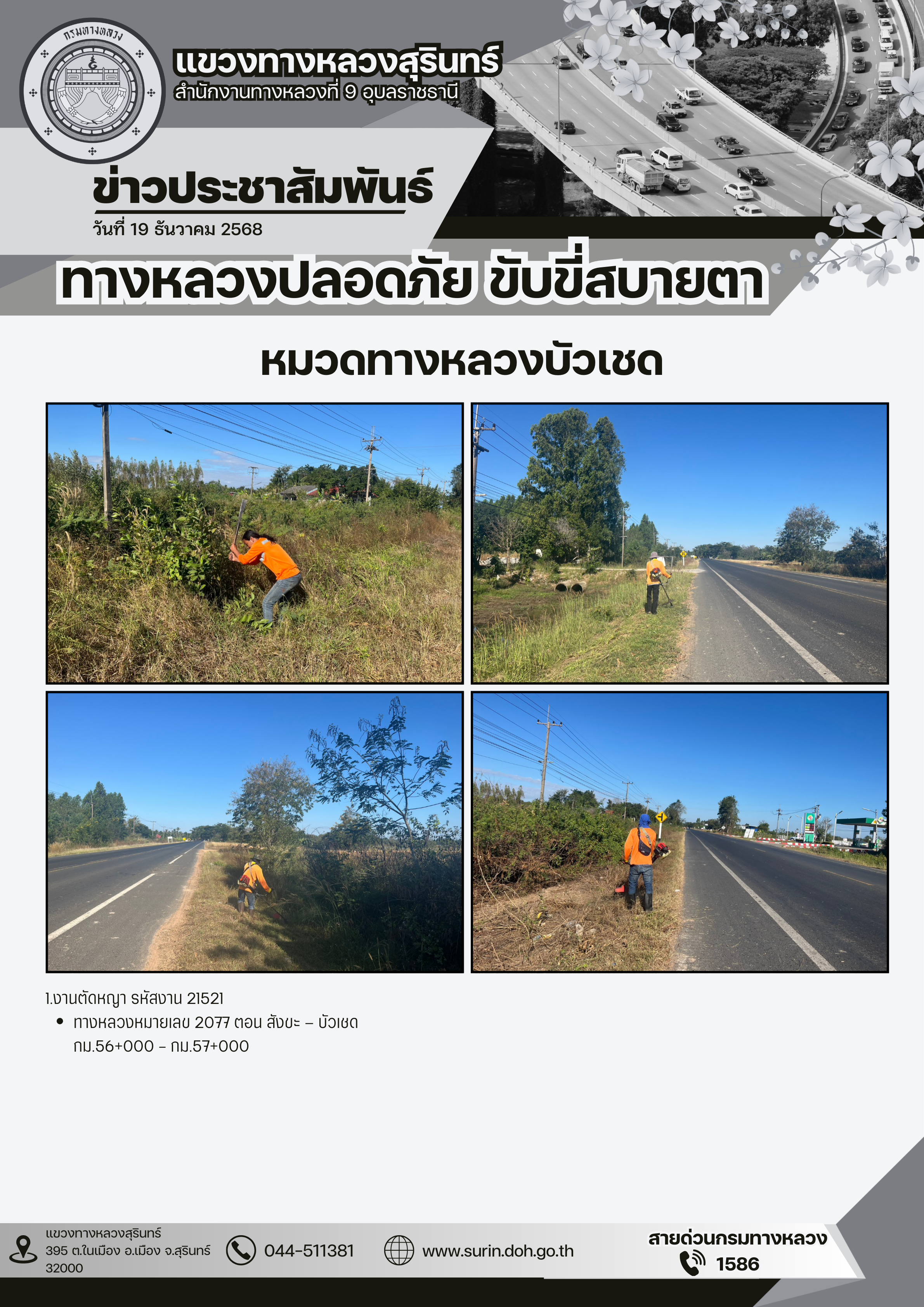 ทางหลวงปลอดภัย ขับขี่สบายตา 19 ธันวาคม 2568 |