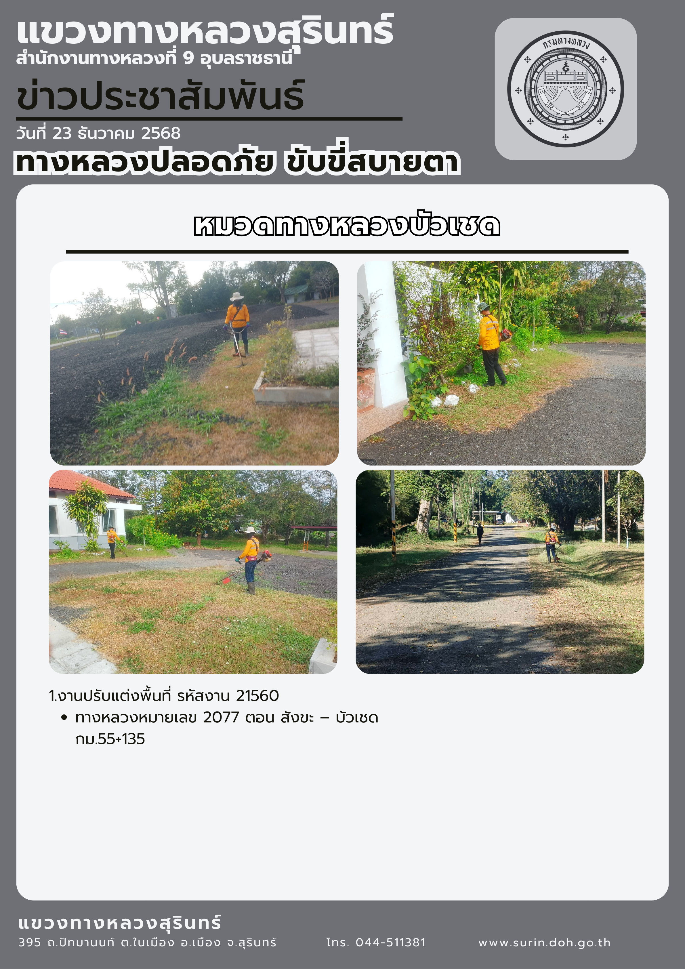 ทางหลวงปลอดภัย ขับขี่สบายตา 23 ธันวาคม 2568 |