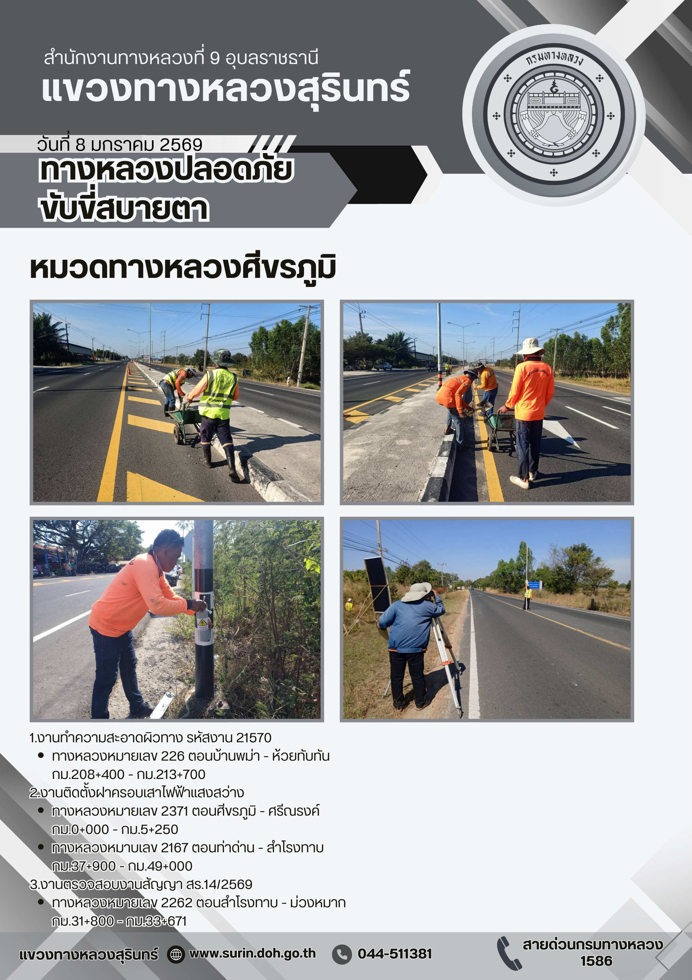 ทางหลวงปลอดภัย ขับขี่สบายตา 8 มกราคม 2569 |