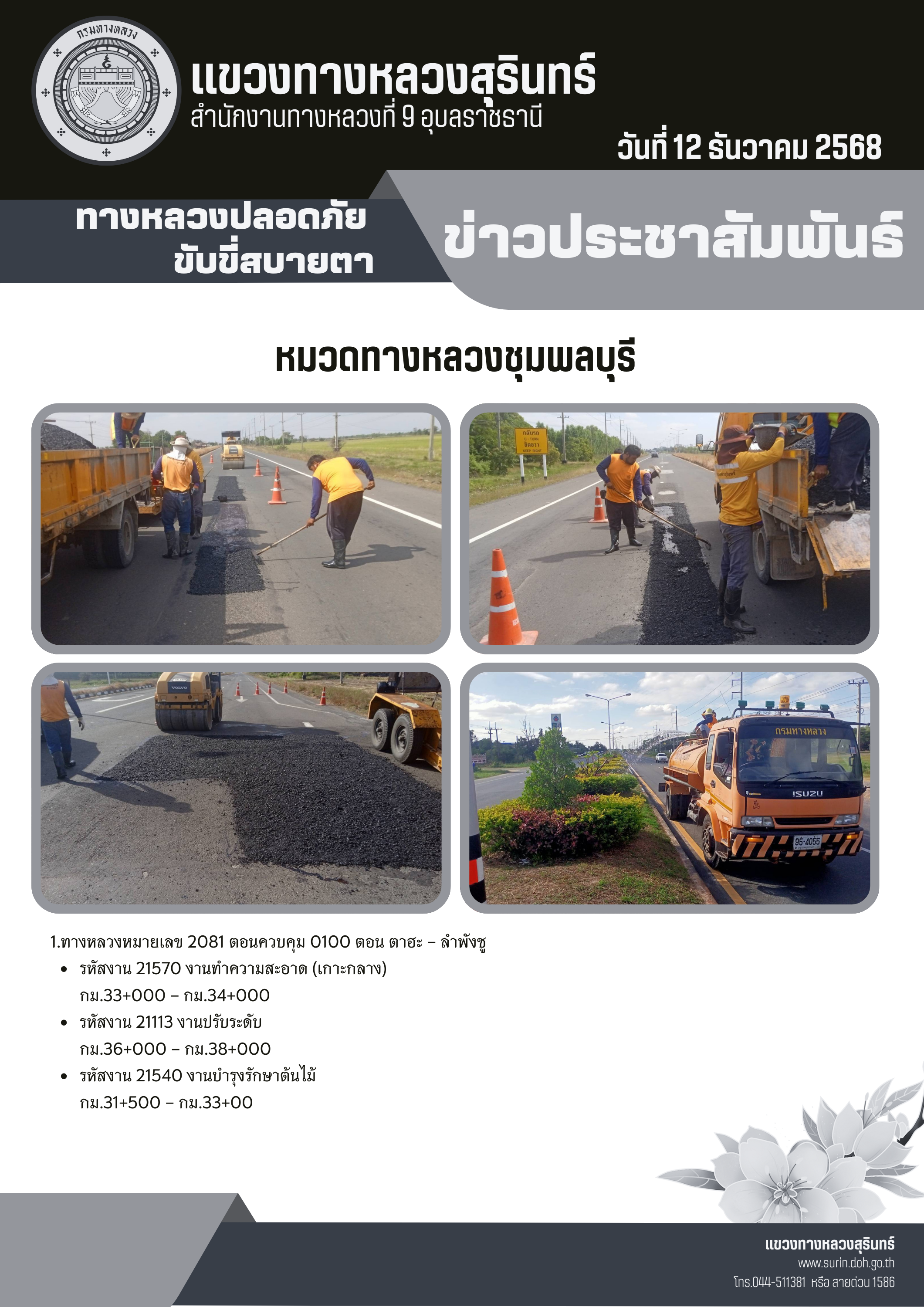 ทางหลวงปลอดภัย ขับขี่สบายตา 12 ธันวาคม 2568 |