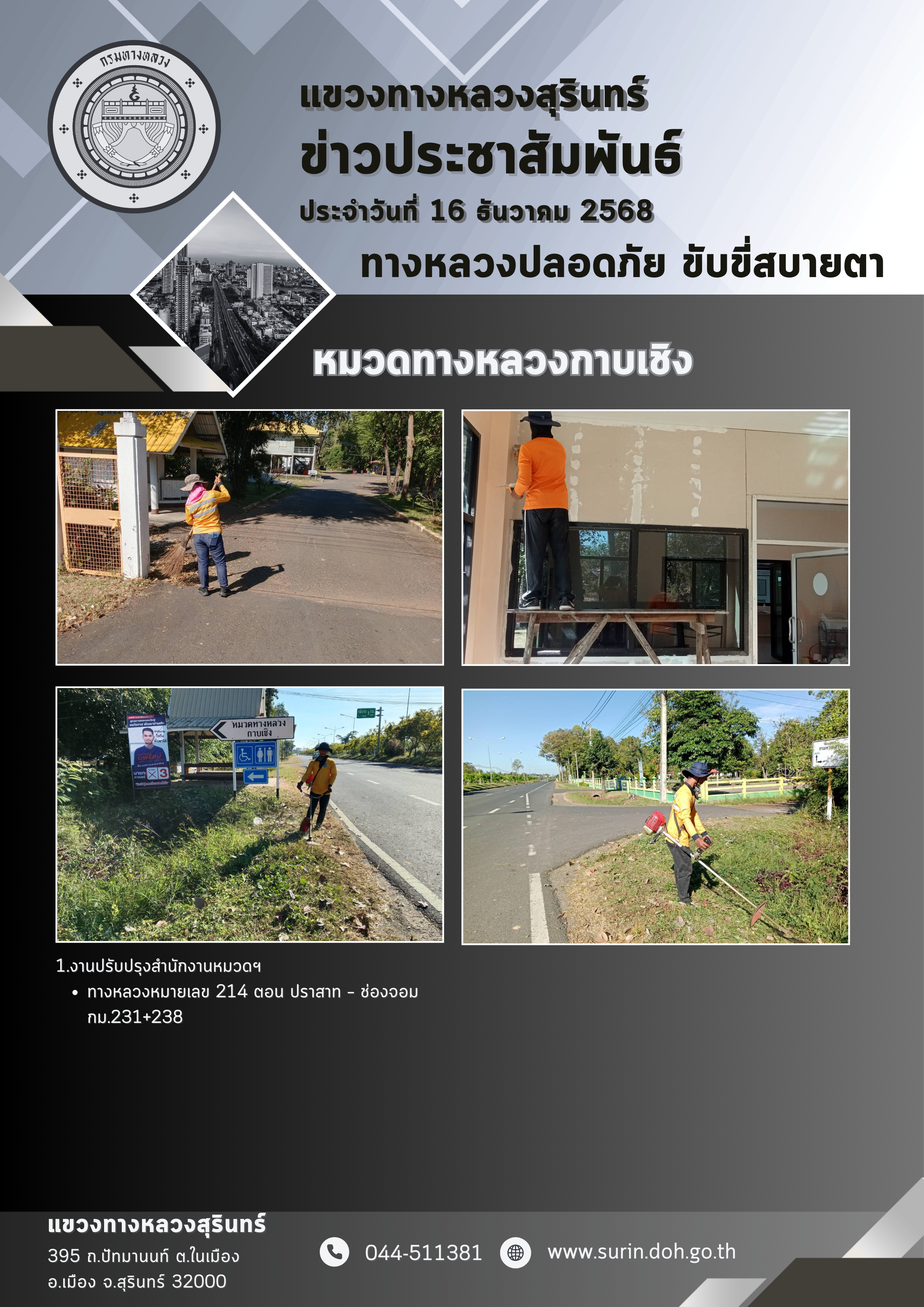ทางหลวงปลอดภัย ขับขี่สบายตา 16 ธันวาคม 2568 |