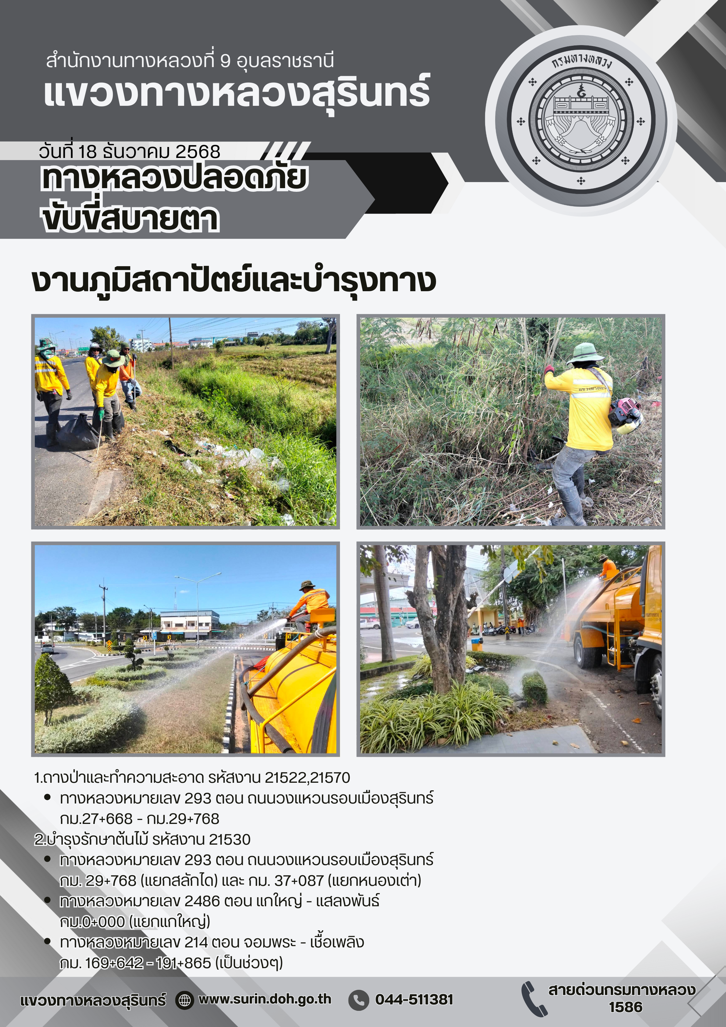 ทางหลวงปลอดภัย ขับขี่สบายตา 18 ธันวาคม 2568 |