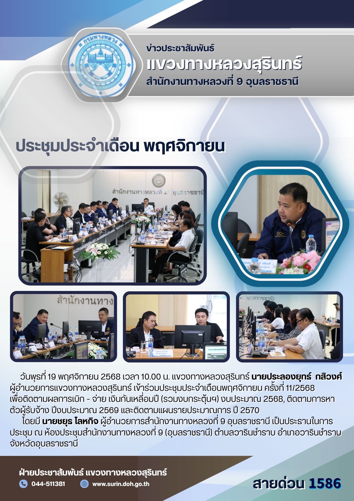 ทางหลวงปลอดภัย ขับขี่สบายตา 19 พฤศจิกายน 2568 |
