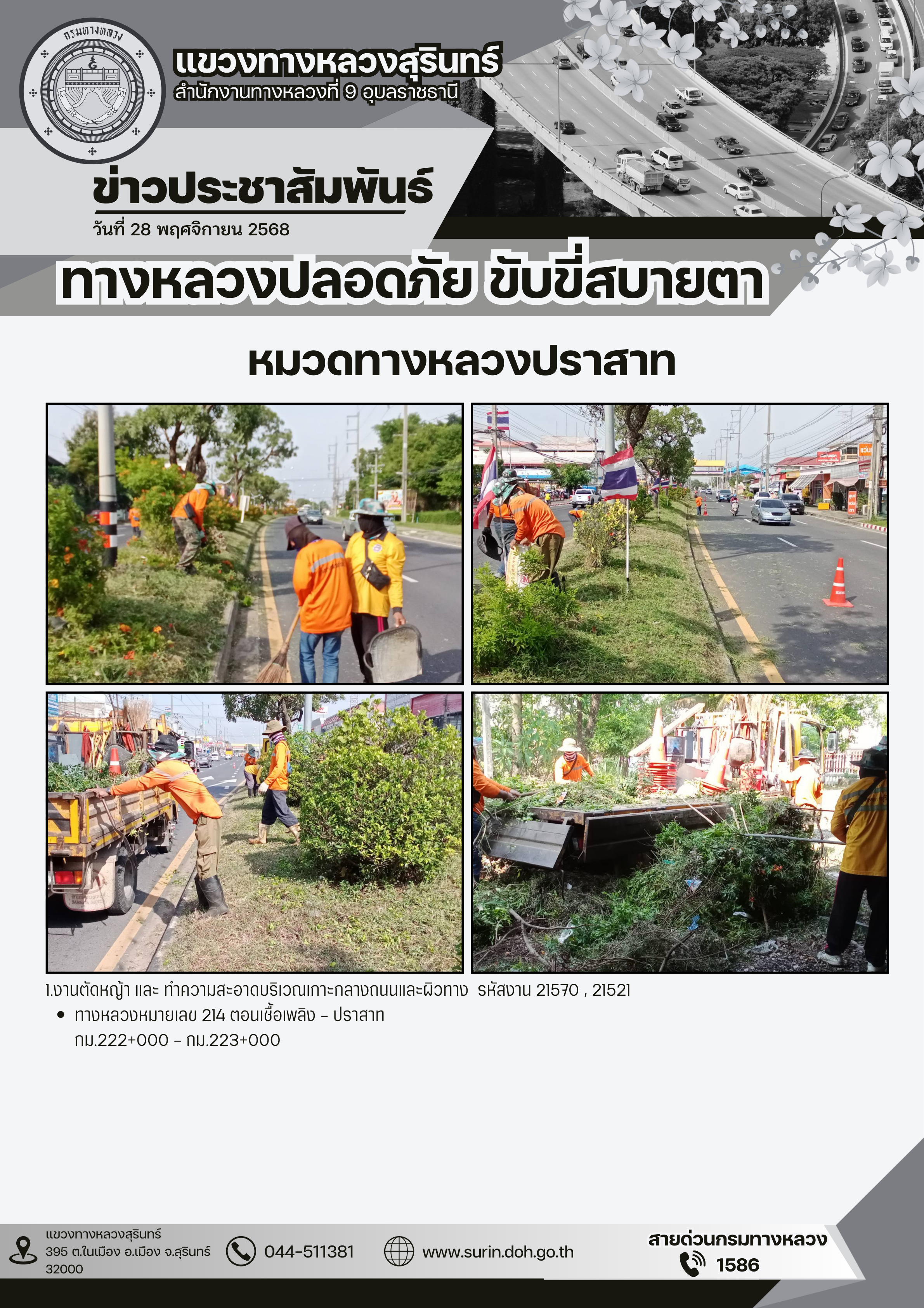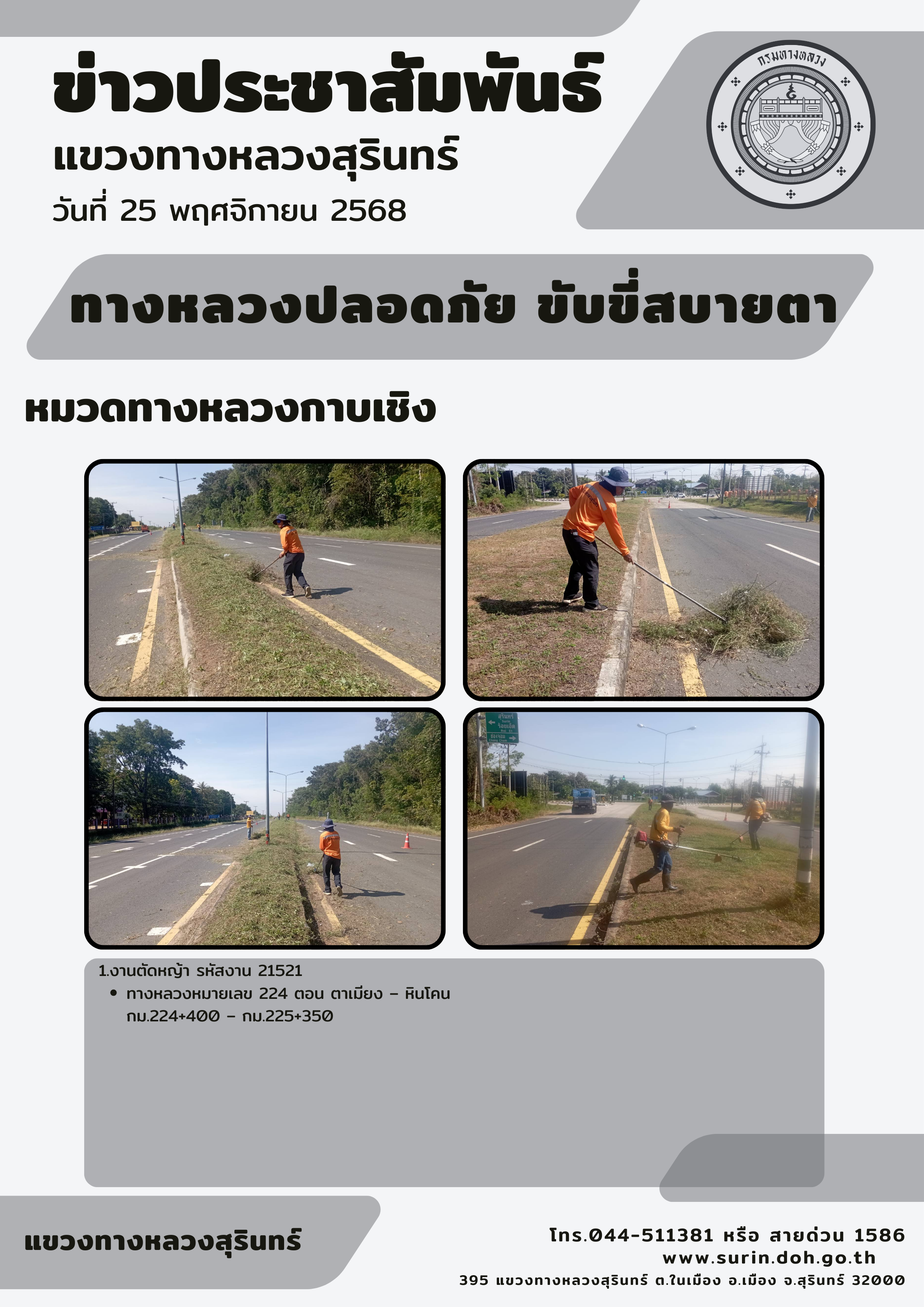 ทางหลวงปลอดภัย ขับขี่สบายตา 25 พฤศจิกายน 2568 |
