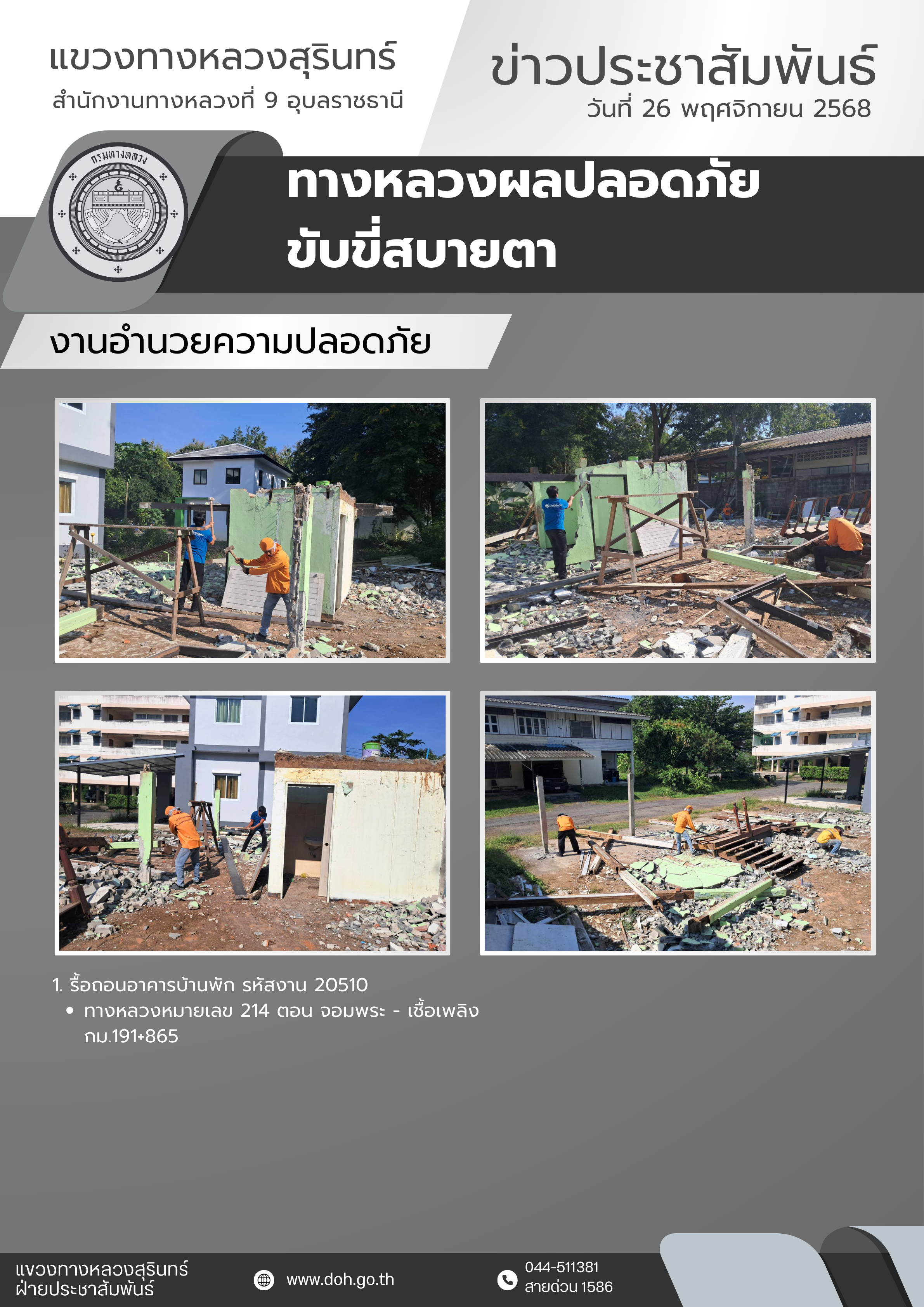 ทางหลวงปลอดภัย ขับขี่สบายตา 26 พฤศจิกายน 2568 |