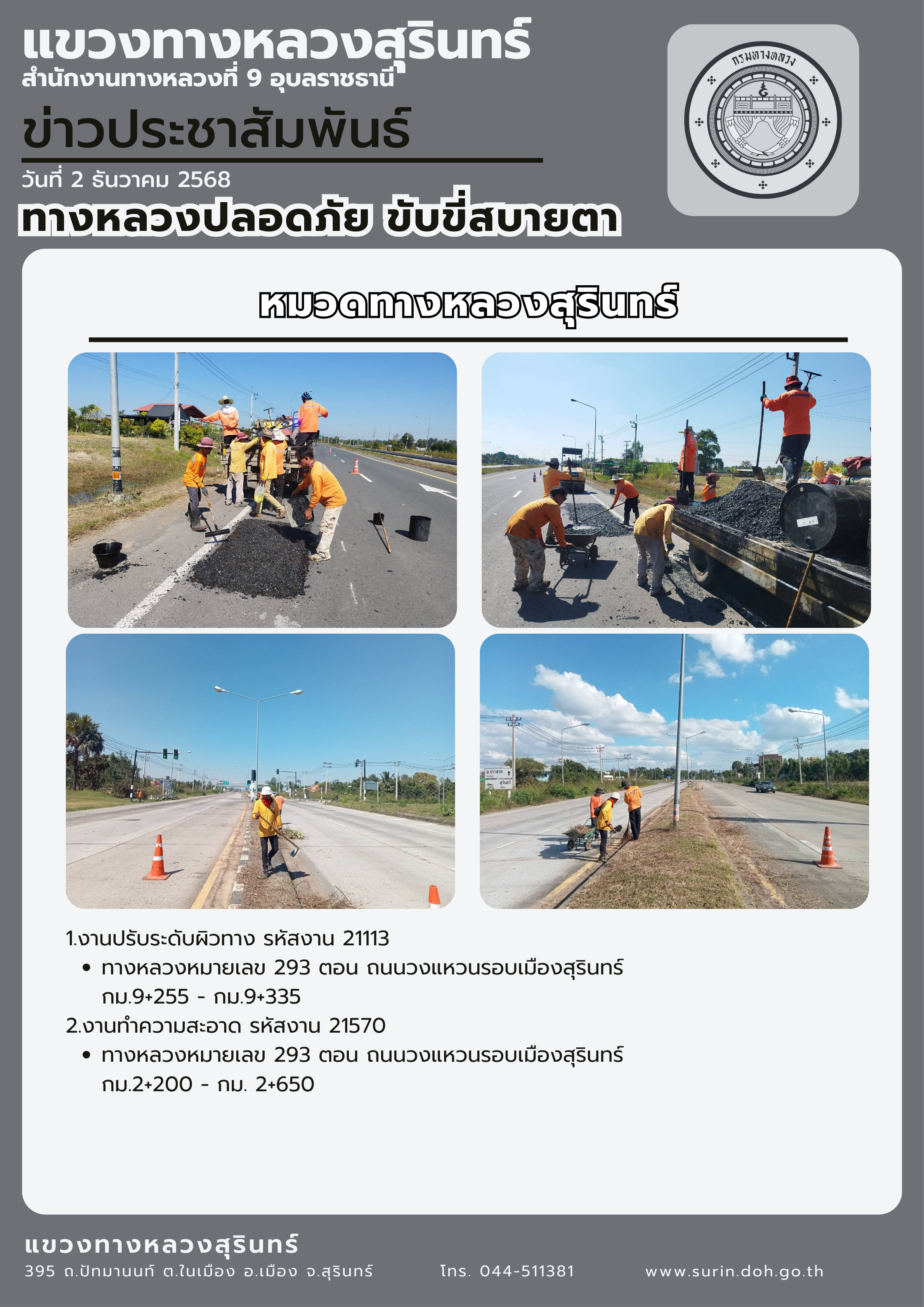 ทางหลวงปลอดภัย ขับขี่สบายตา 2 ธันวาคม 2568 |