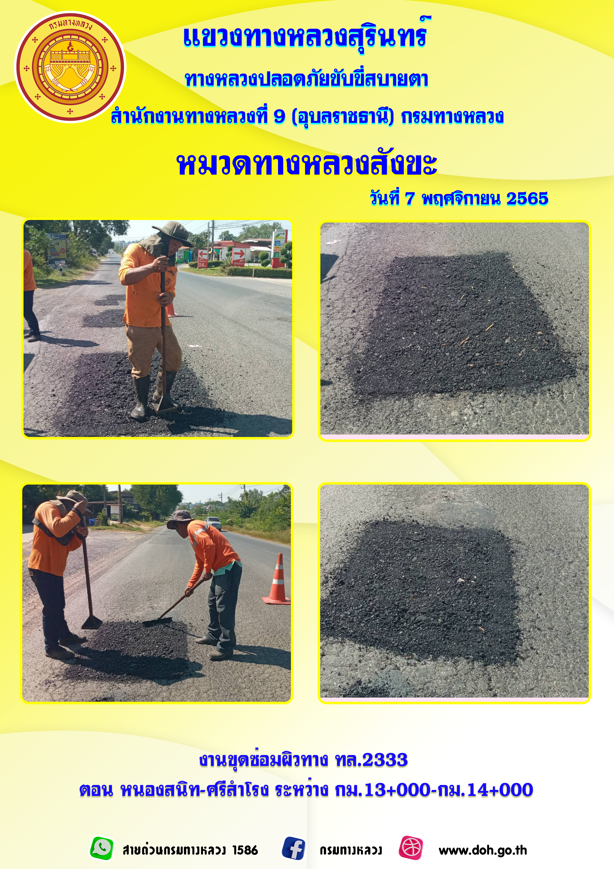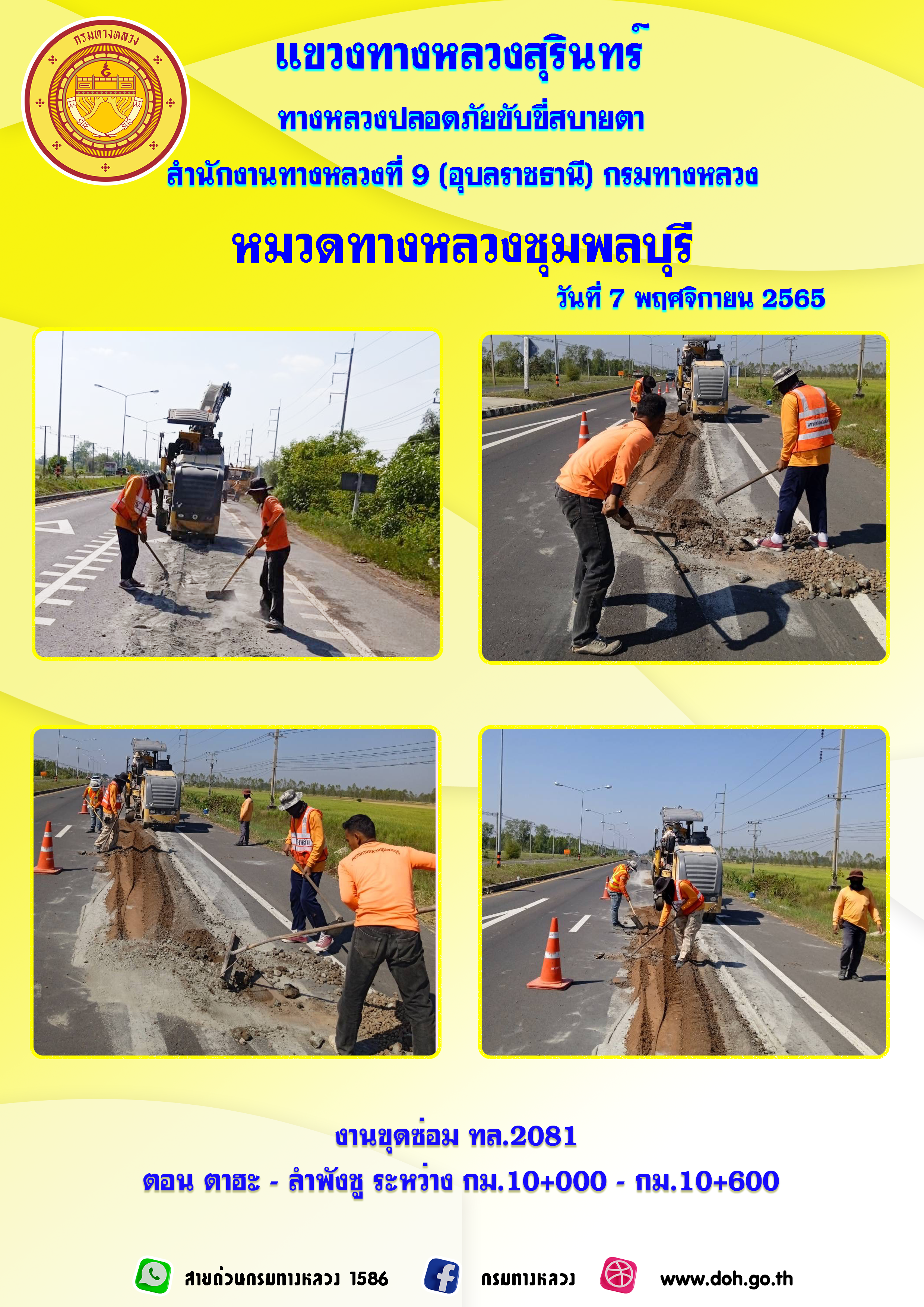 ทางหลวงปลอยภัย ขับขี่สบายตา 7 พฤศจิกายน 2565