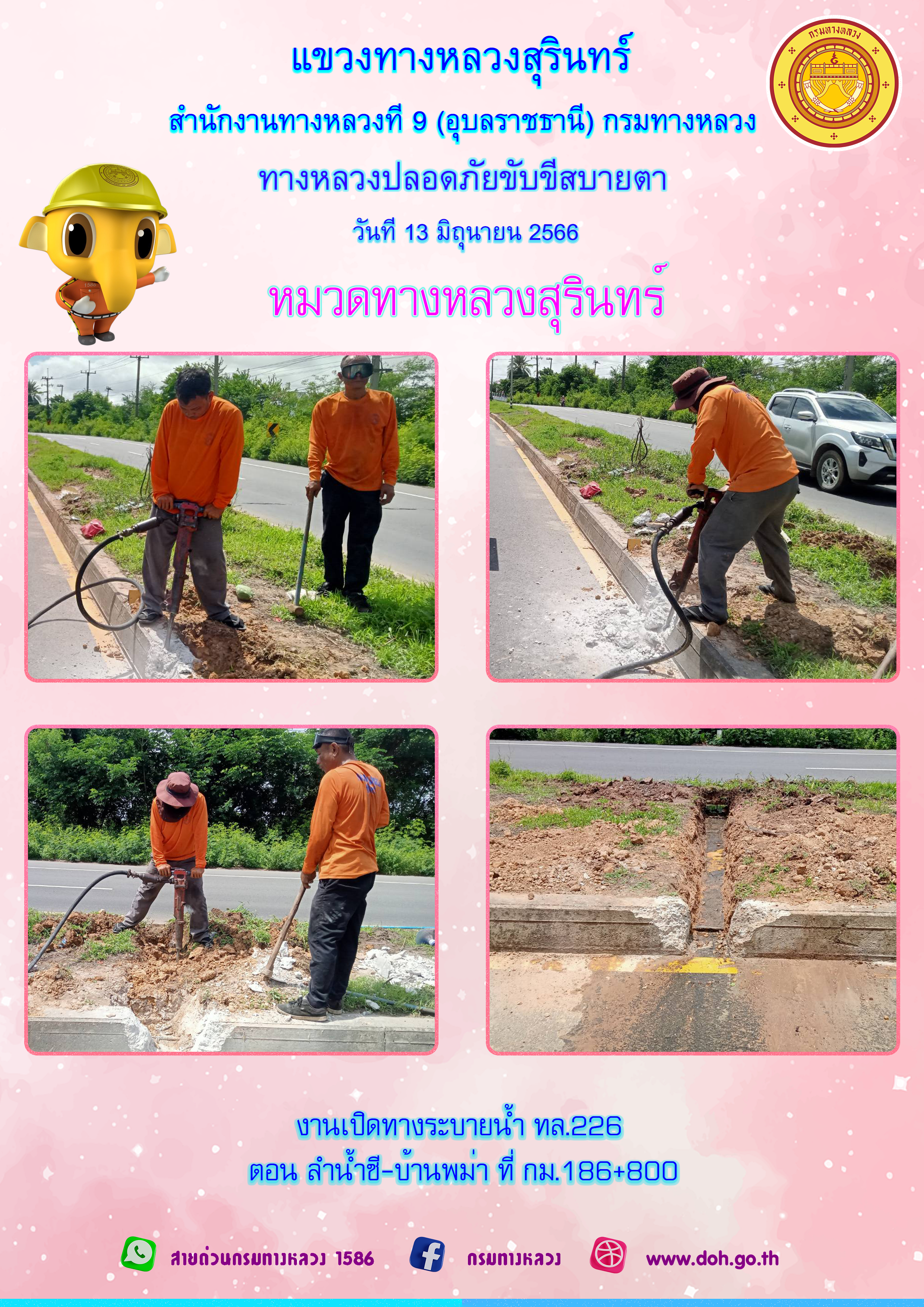 ข้อมูลภาพกิจกรรม : ทางหลวงปลอยภัย ขับขี่สบายตา 13 มิถุนายน 2566