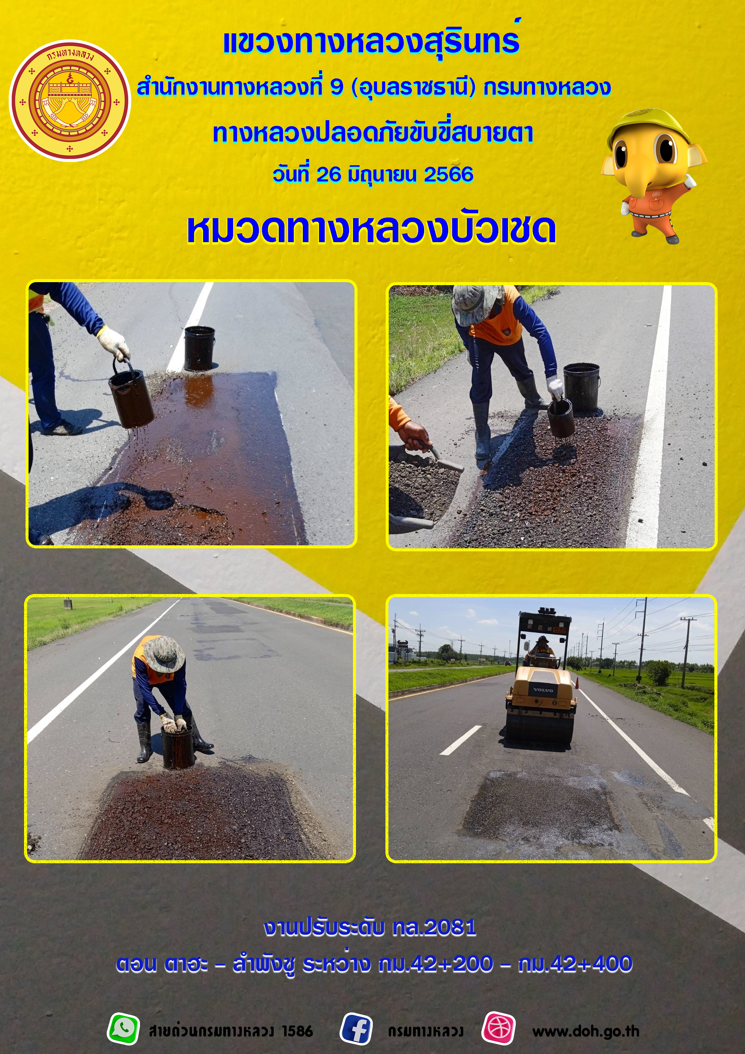 ข้อมูลภาพกิจกรรม : ทางหลวงปลอยภัย ขับขี่สบายตา 26 มิถุนายน 2566