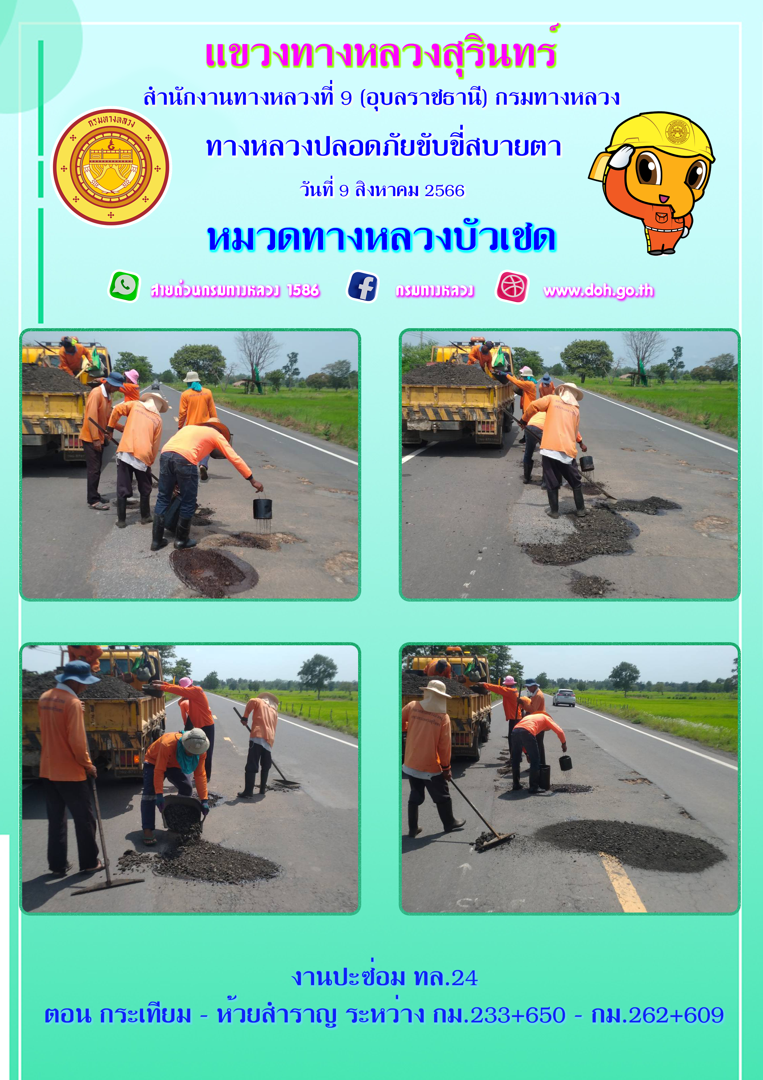 ทางหลวงปลอยภัย ขับขี่สบายตา 9 สิงหาคม 2566