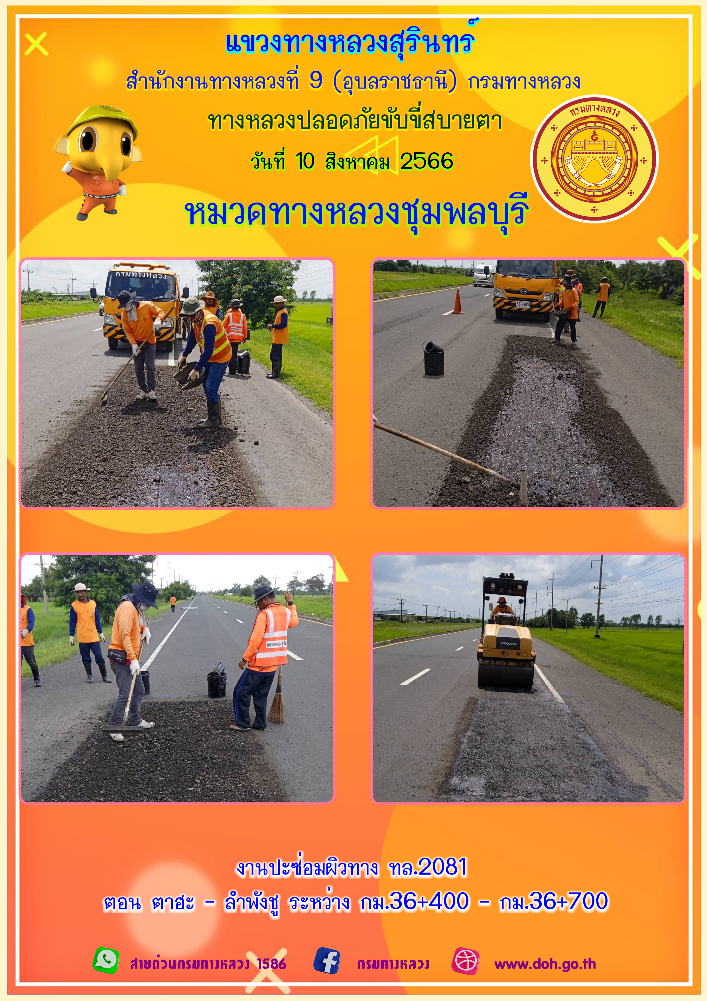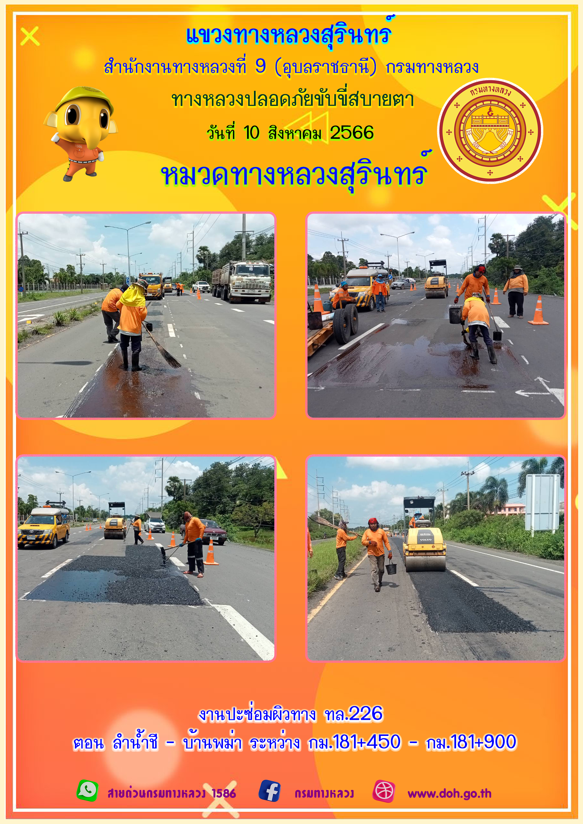 ข้อมูลภาพกิจกรรม : ทางหลวงปลอยภัย ขับขี่สบายตา 10 สิงหาคม 2566