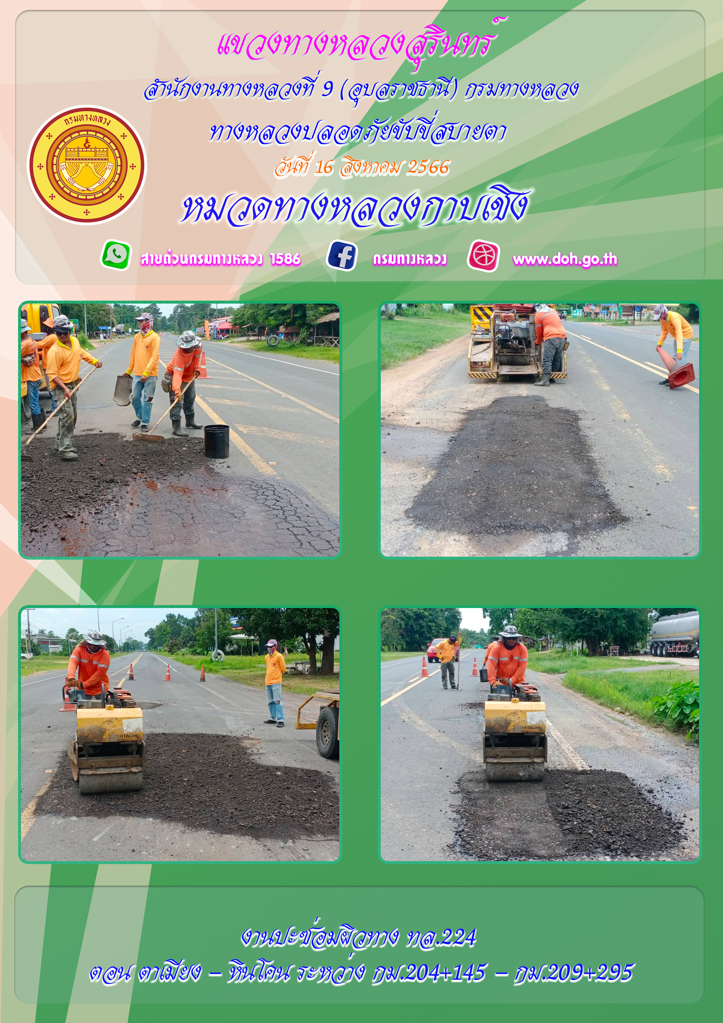 ข้อมูลภาพกิจกรรม : ทางหลวงปลอยภัย ขับขี่สบายตา 16 สิงหาคม 2566