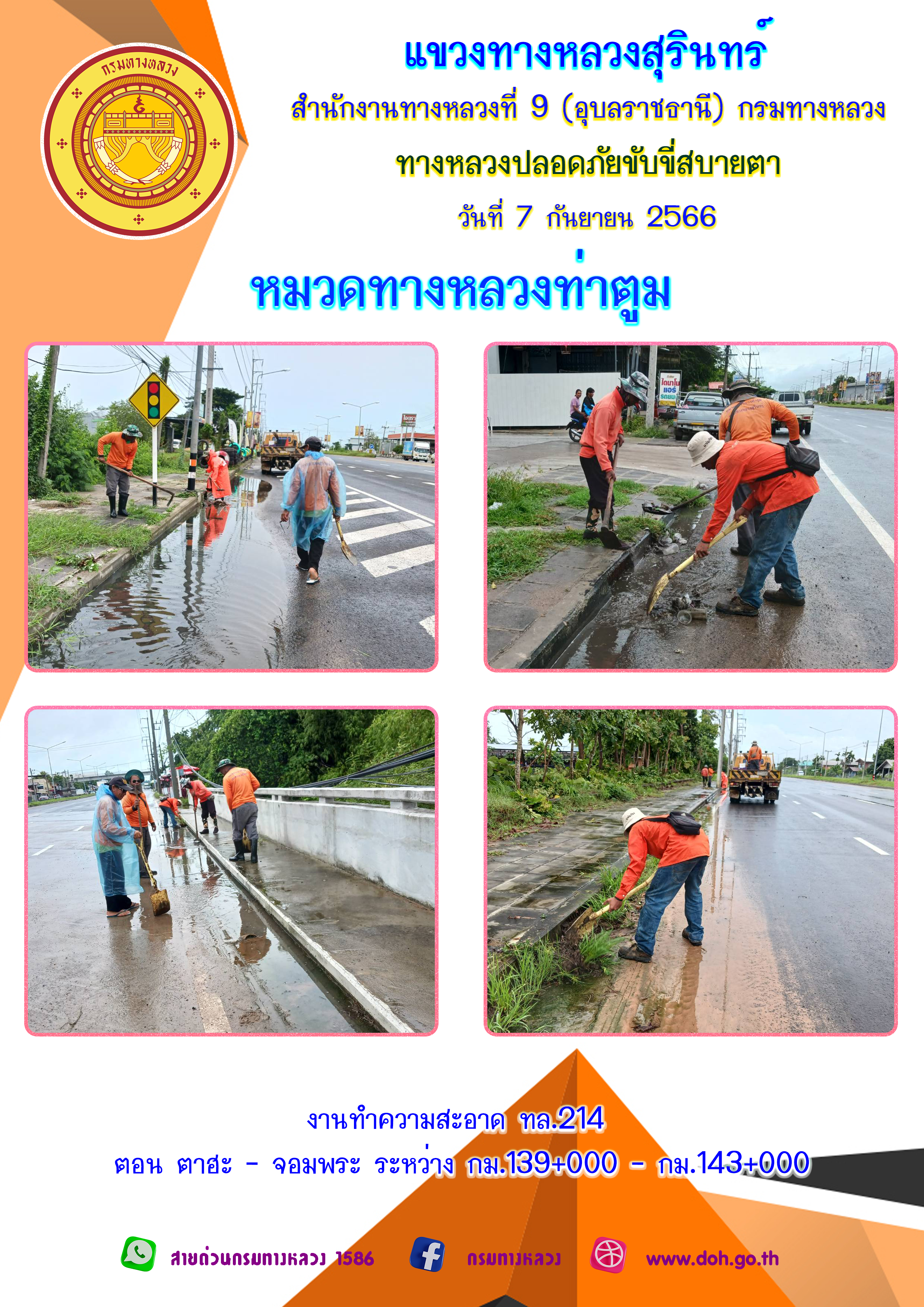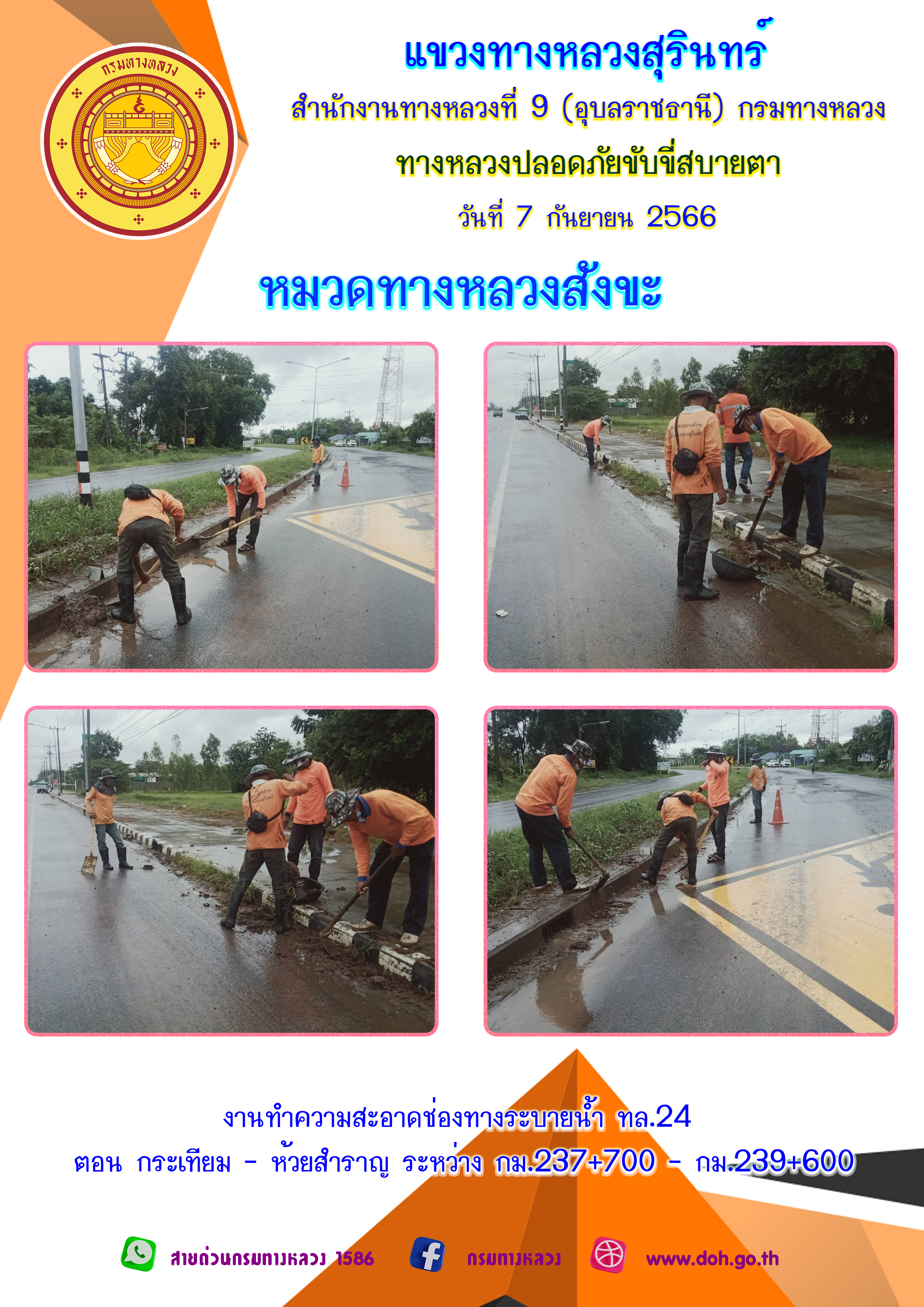 ข้อมูลภาพกิจกรรม : ทางหลวงปลอยภัย ขับขี่สบายตา 7 กันยายน 2566