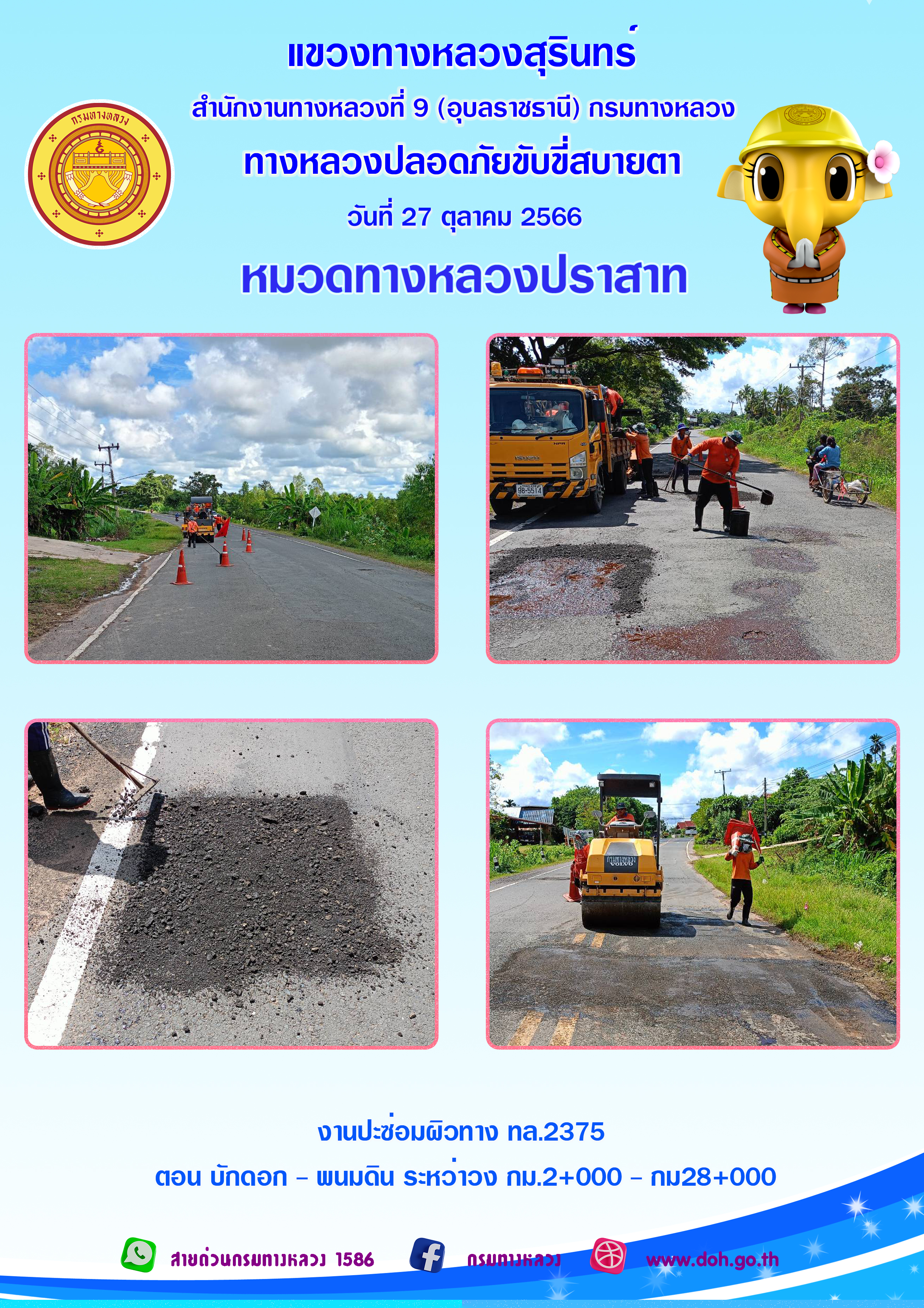 ทางหลวงปลอยภัย ขับขี่สบายตา 27 ตุลาคม 2566