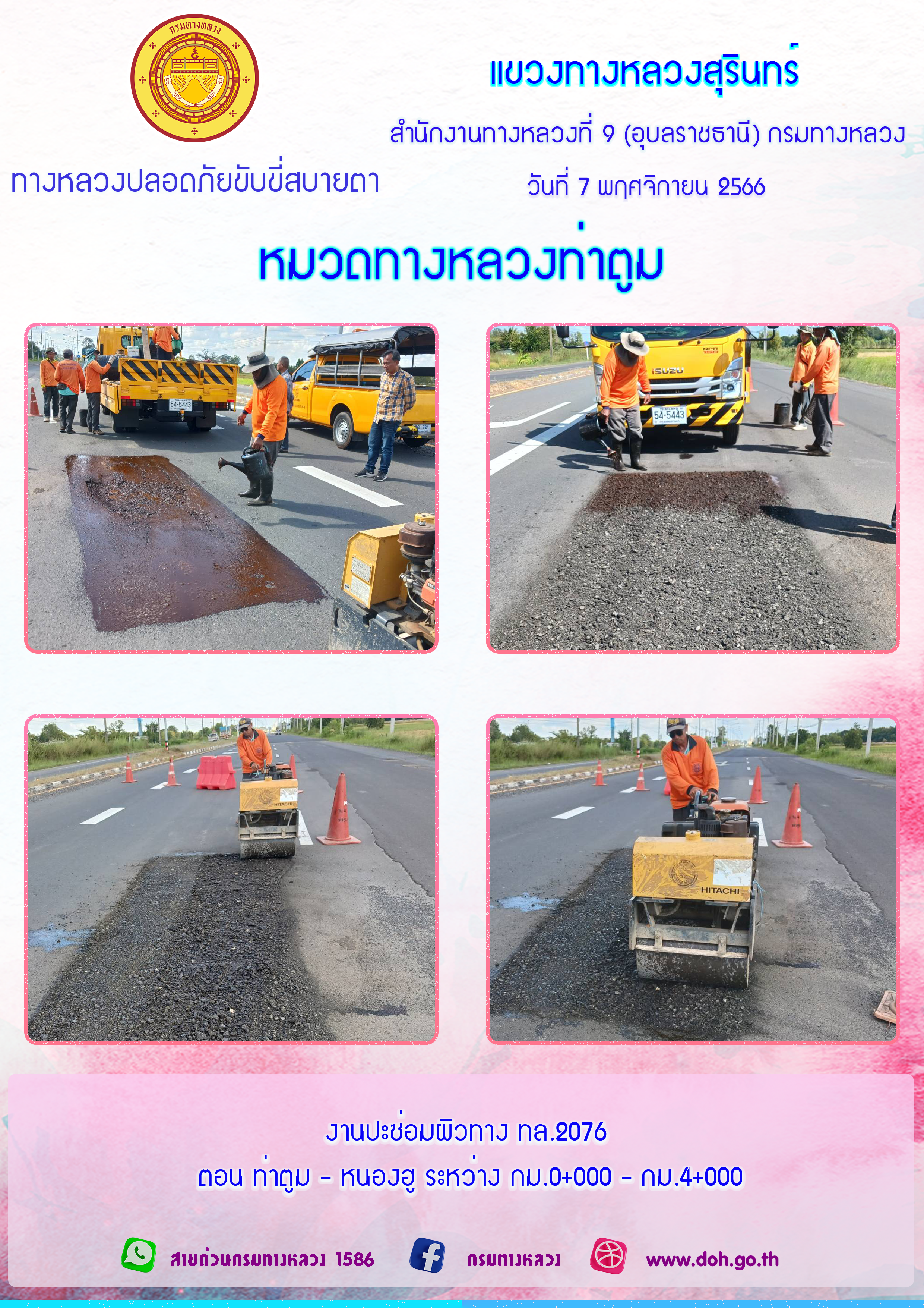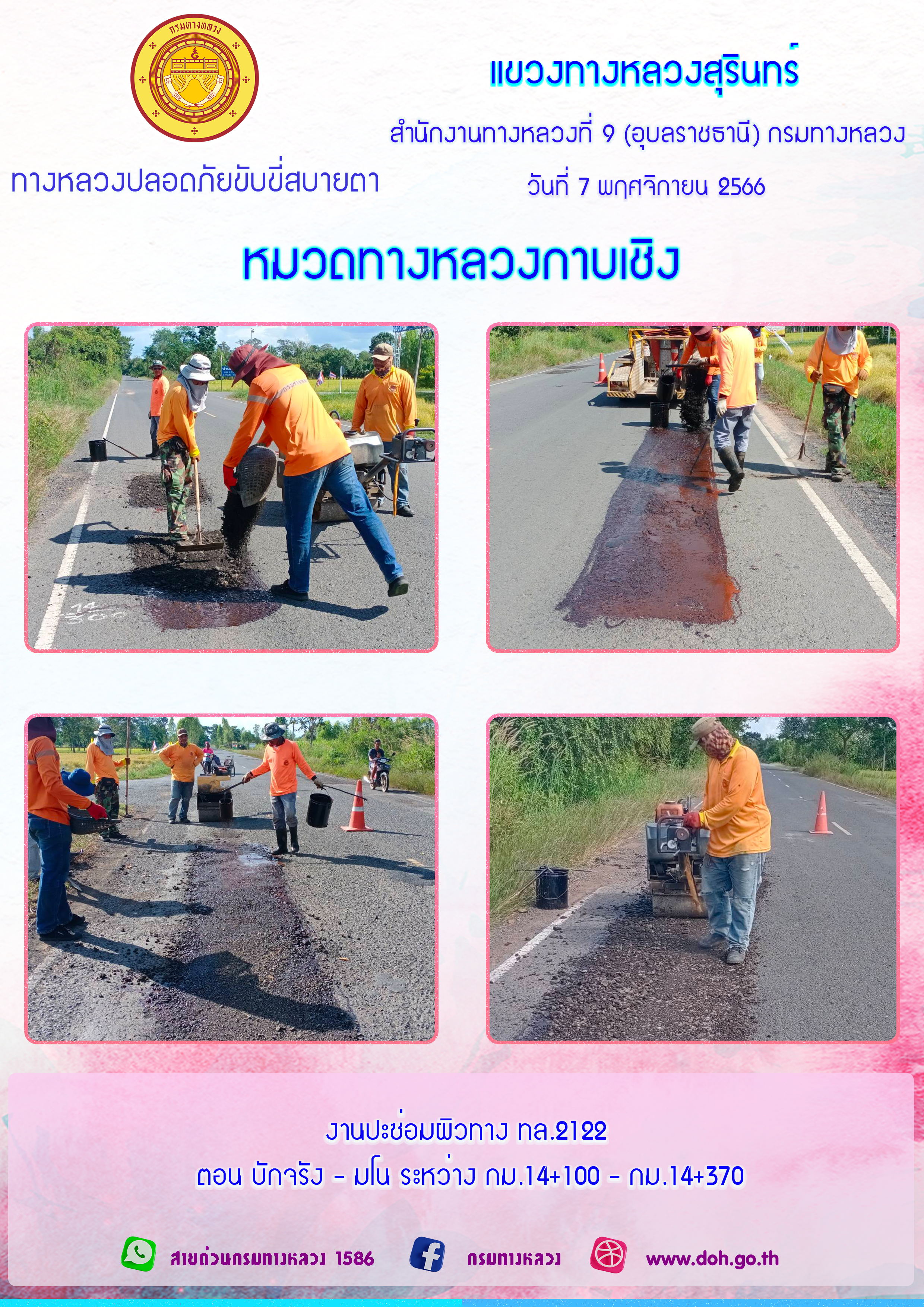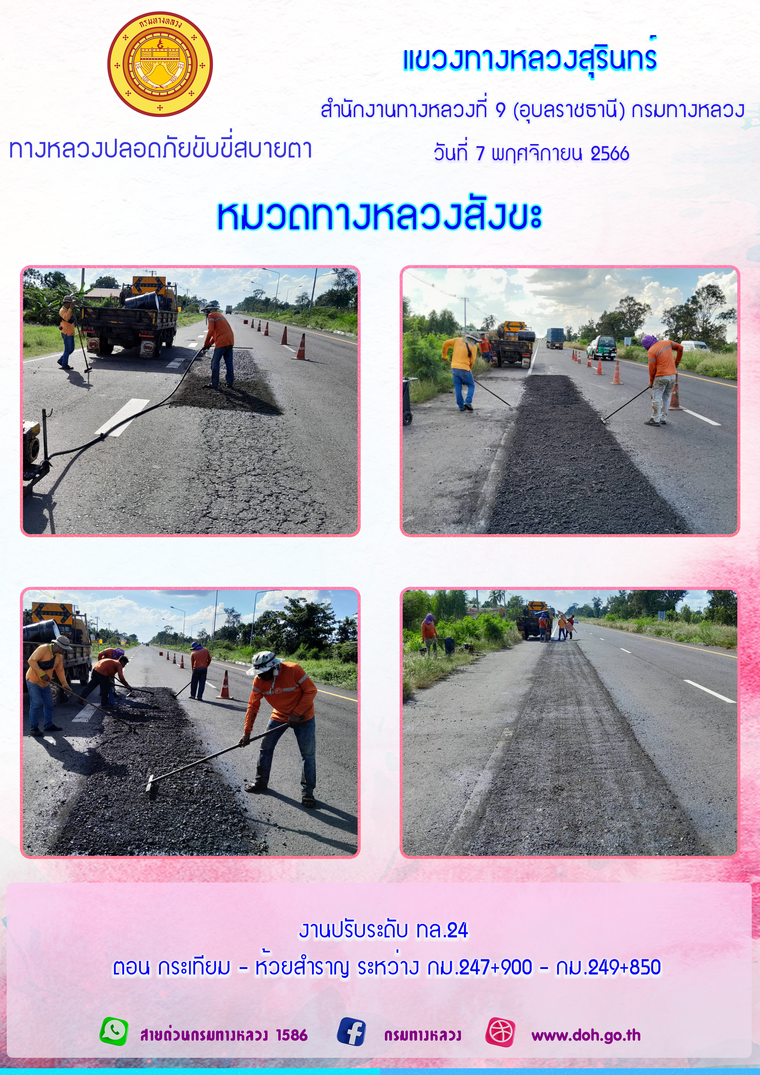 ข้อมูลภาพกิจกรรม : ทางหลวงปลอยภัย ขับขี่สบายตา 7 พฤศจิกายน 2566