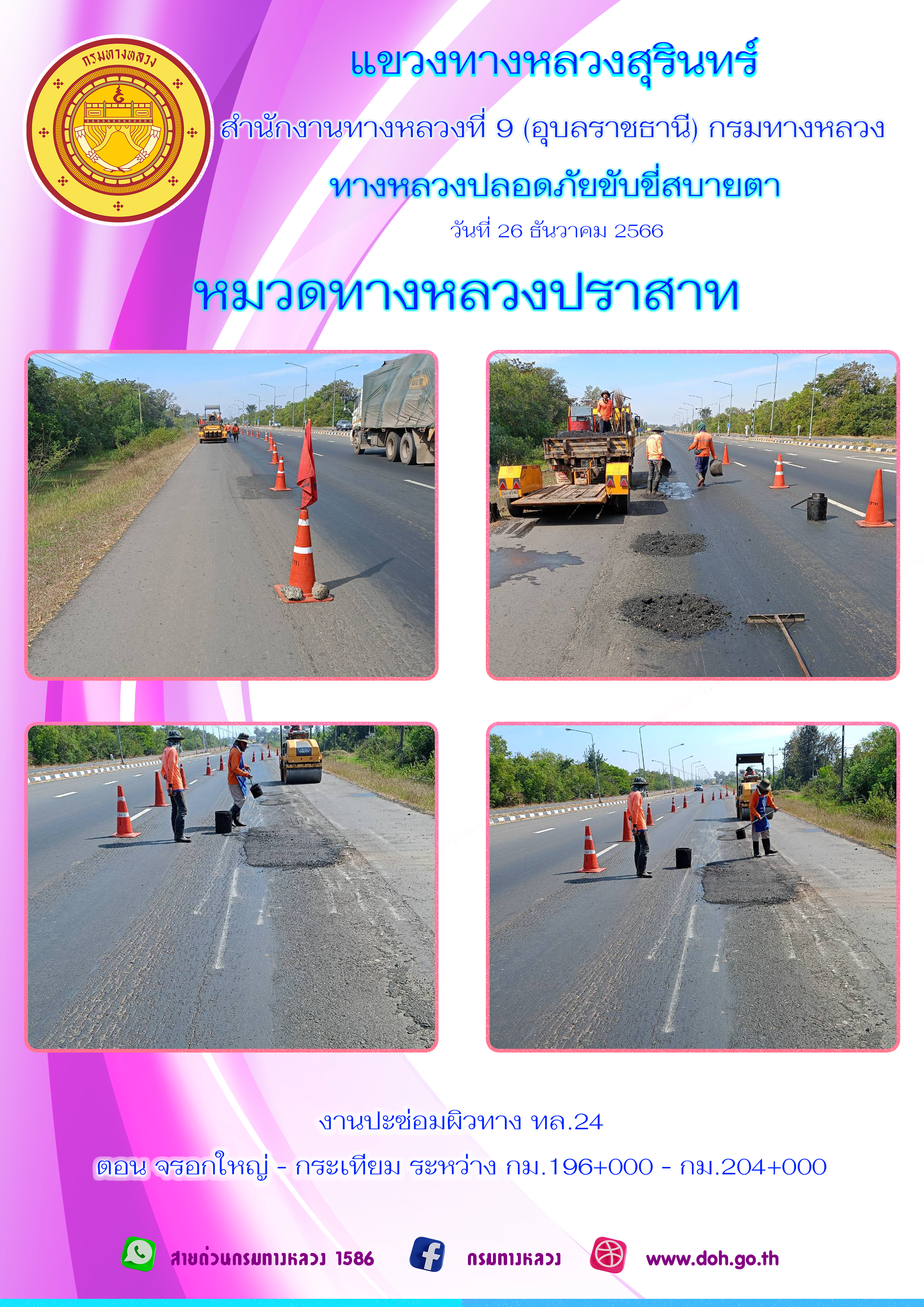 ทางหลวงปลอยภัย ขับขี่สบายตา 26 ธันวาคม 2566