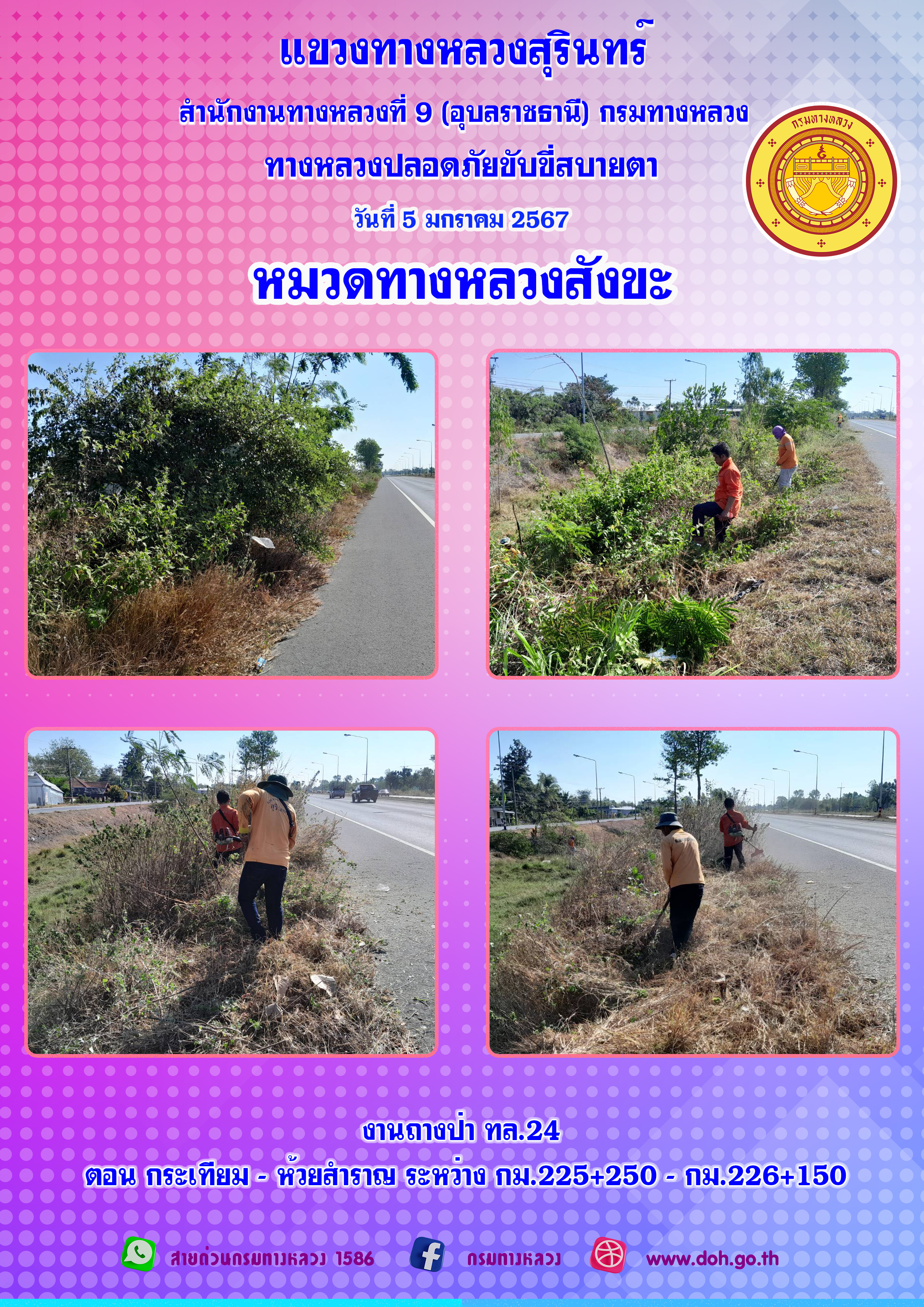 ข้อมูลภาพกิจกรรม : ทางหลวงปลอยภัย ขับขี่สบายตา 5 มกราคม 2567