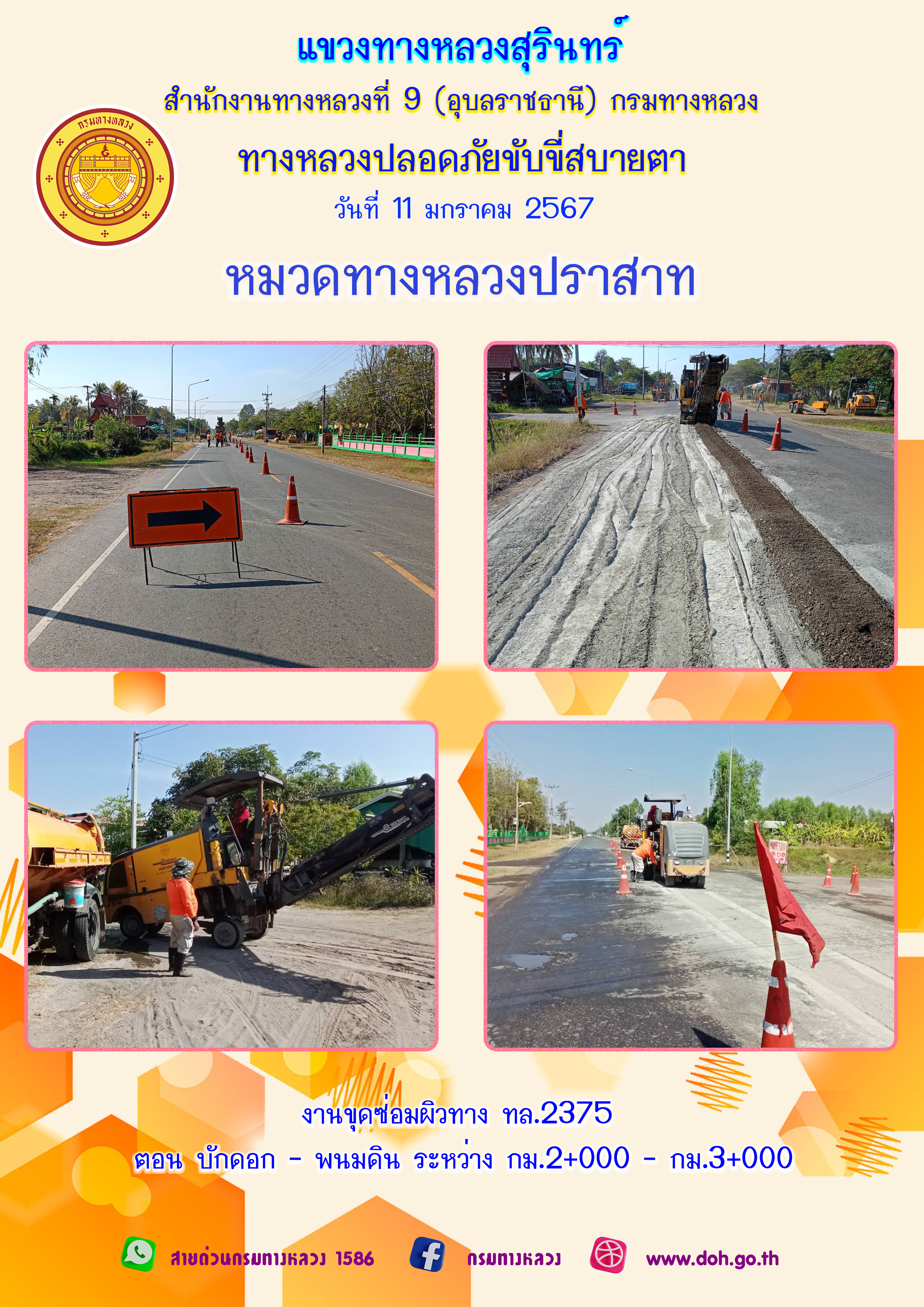 ทางหลวงปลอยภัย ขับขี่สบายตา 11 มกราคม 2567