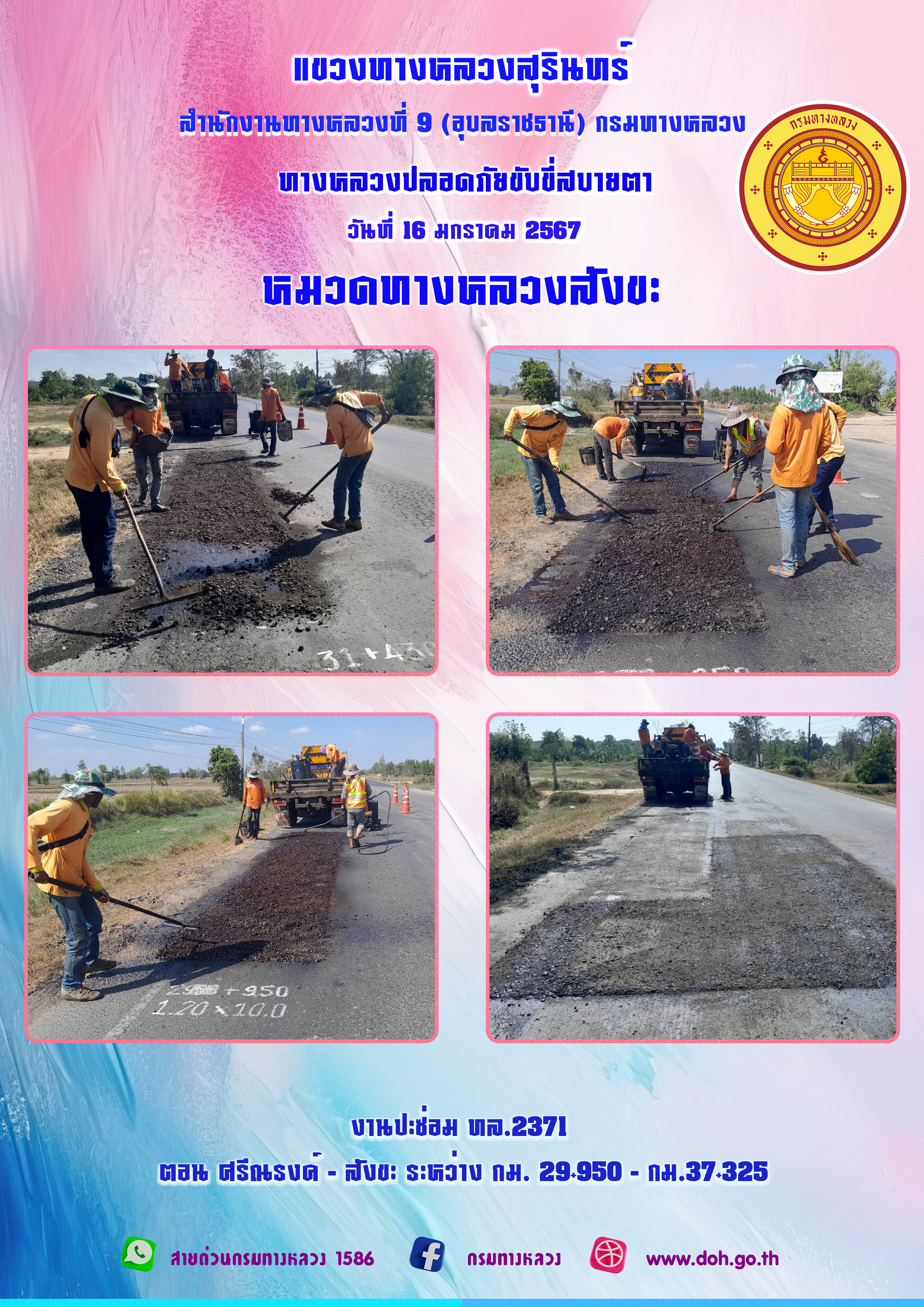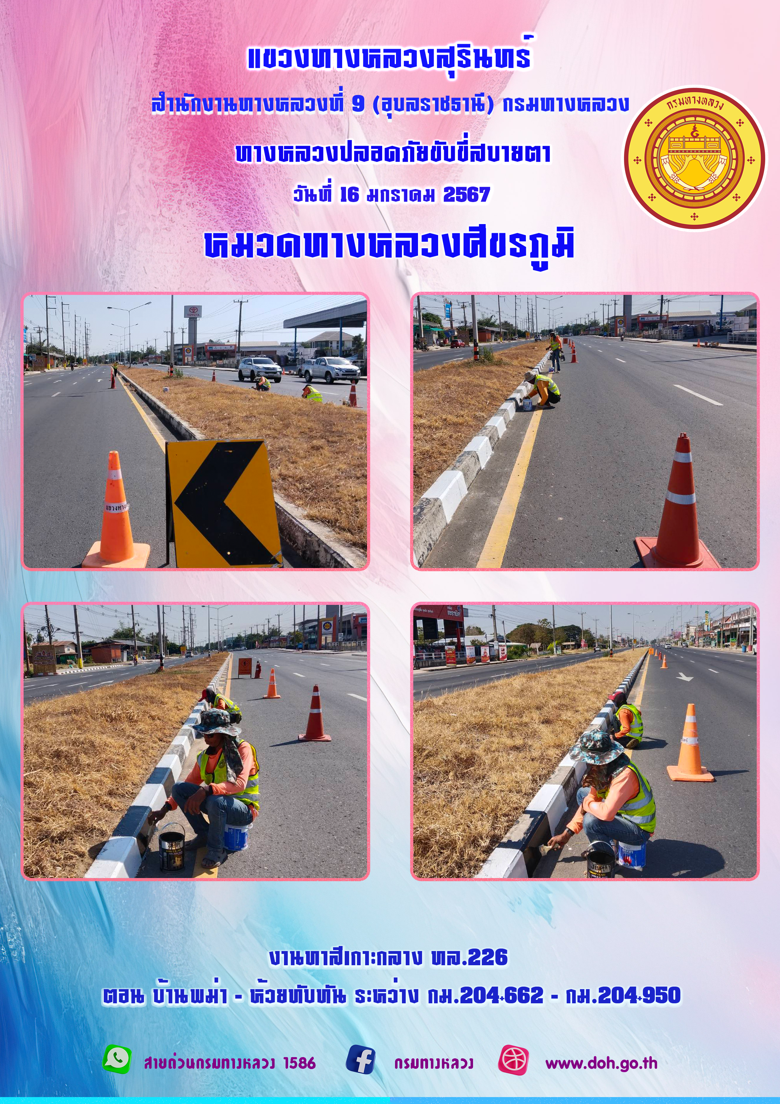 ข้อมูลภาพกิจกรรม : ทางหลวงปลอยภัย ขับขี่สบายตา 16 มกราคม 2567