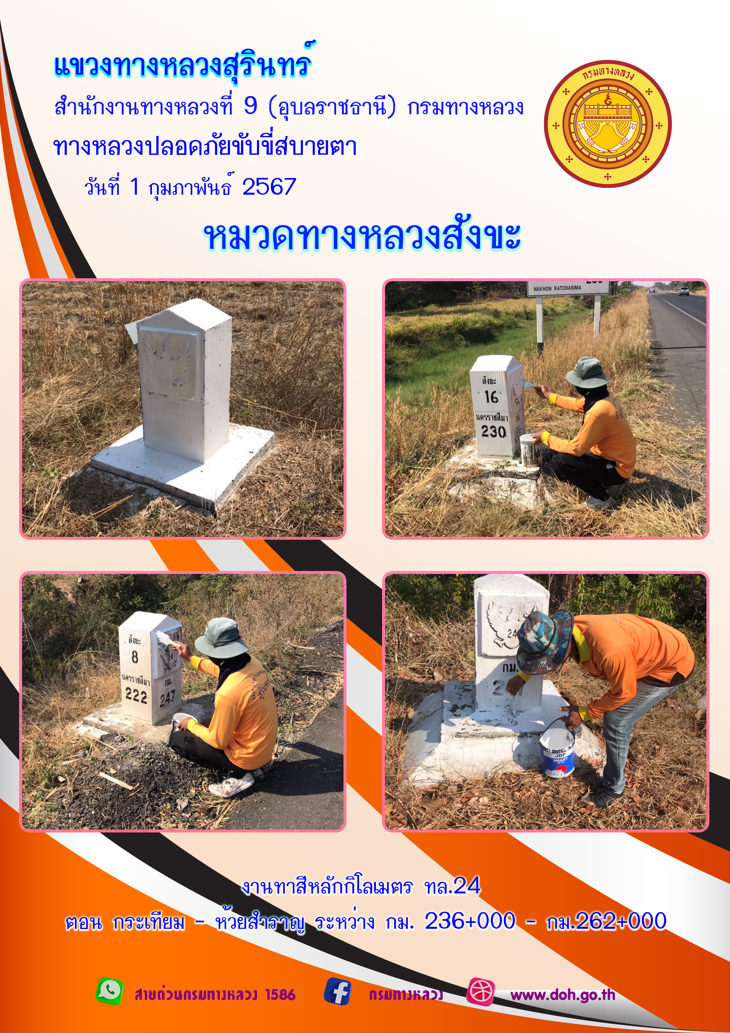 ข้อมูลภาพกิจกรรม : ทางหลวงปลอยภัย ขับขี่สบายตา 1 กุมภาพันธ์ 2567