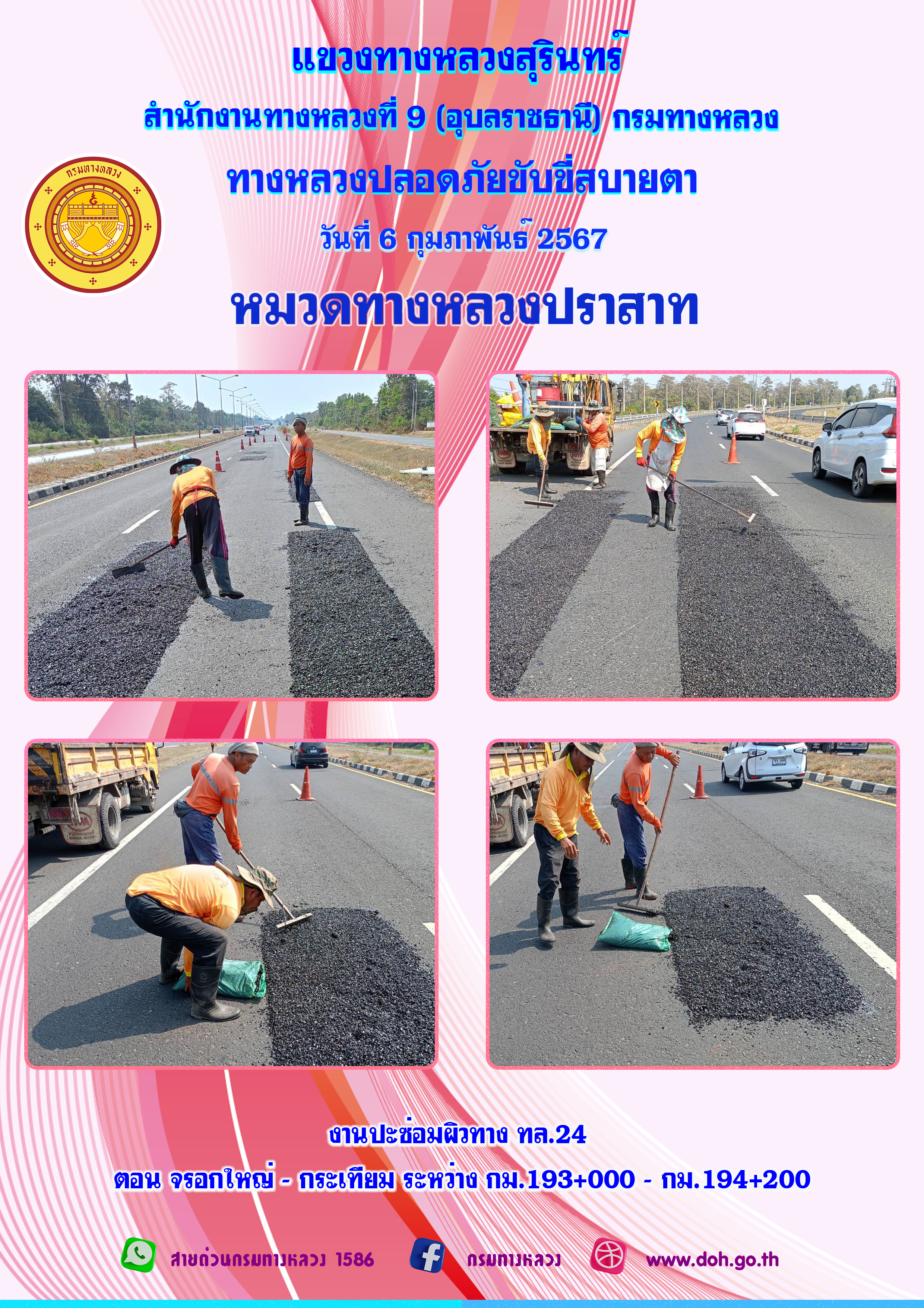 ข้อมูลภาพกิจกรรม : ทางหลวงปลอยภัย ขับขี่สบายตา 6 กุมภาพันธ์ 2567