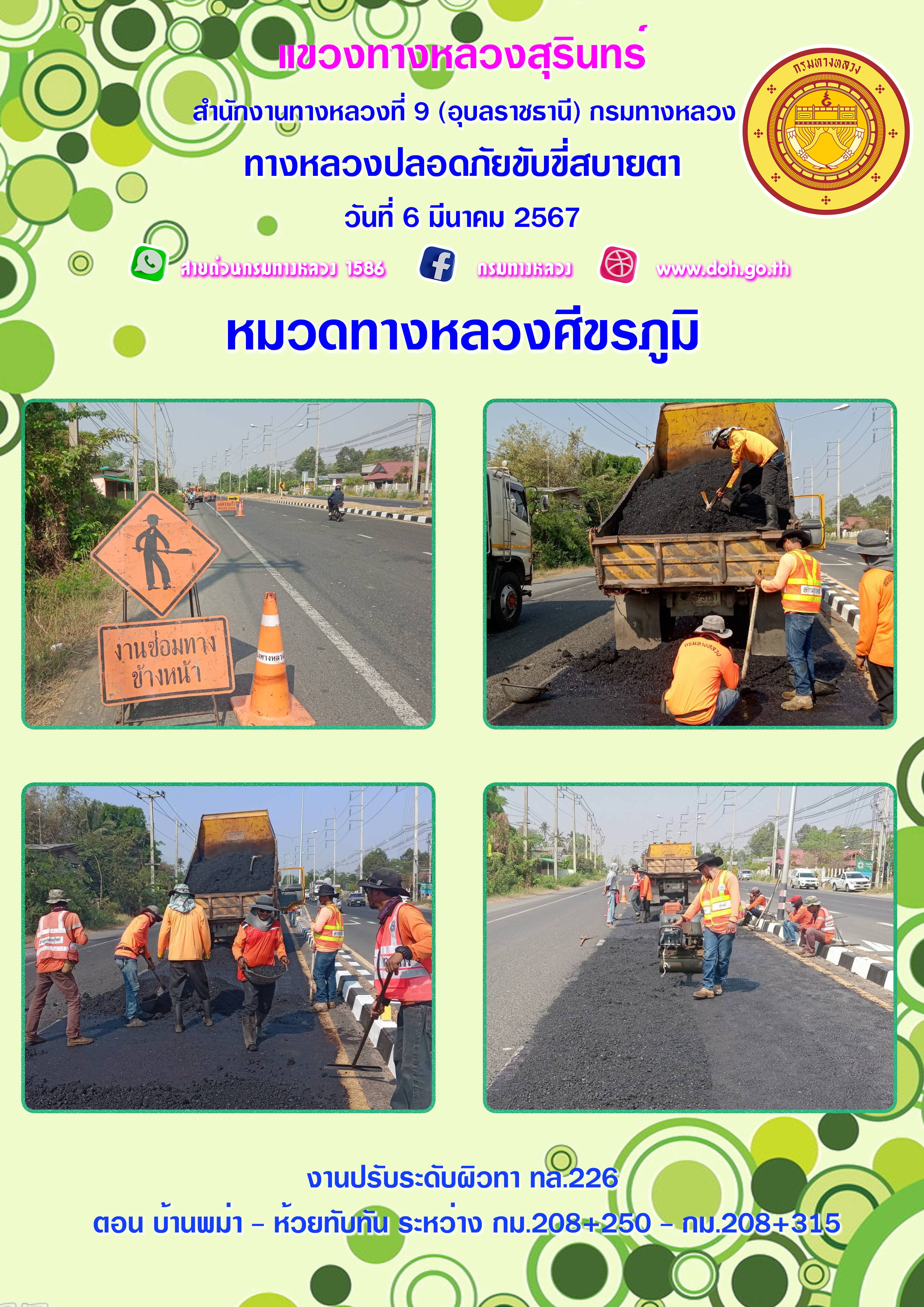 ทางหลวงปลอยภัย ขับขี่สบายตา 6 มีนาคม 2567