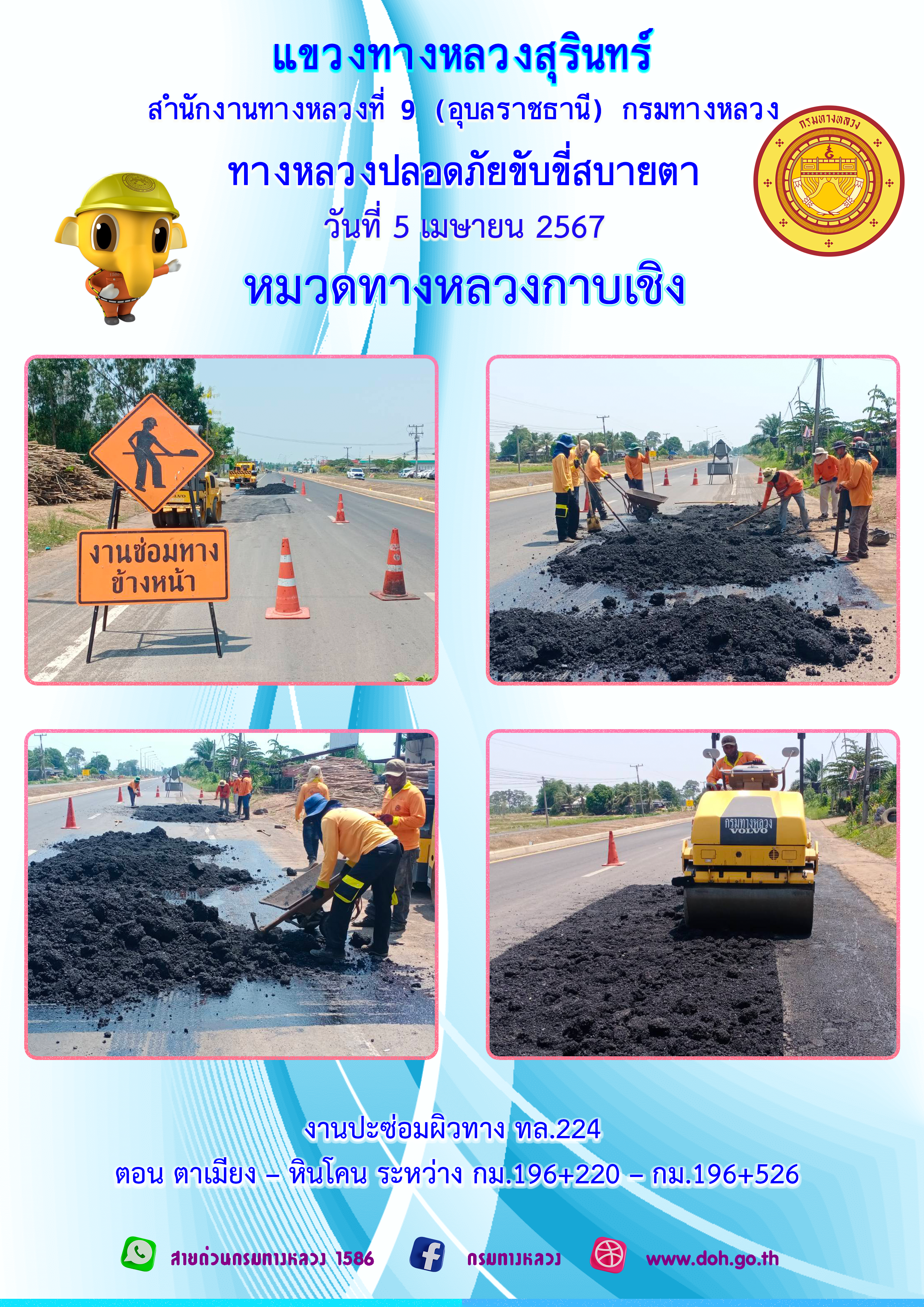 ข้อมูลภาพกิจกรรม : ทางหลวงปลอยภัย ขับขี่สบายตา 5 เมษายน 2567