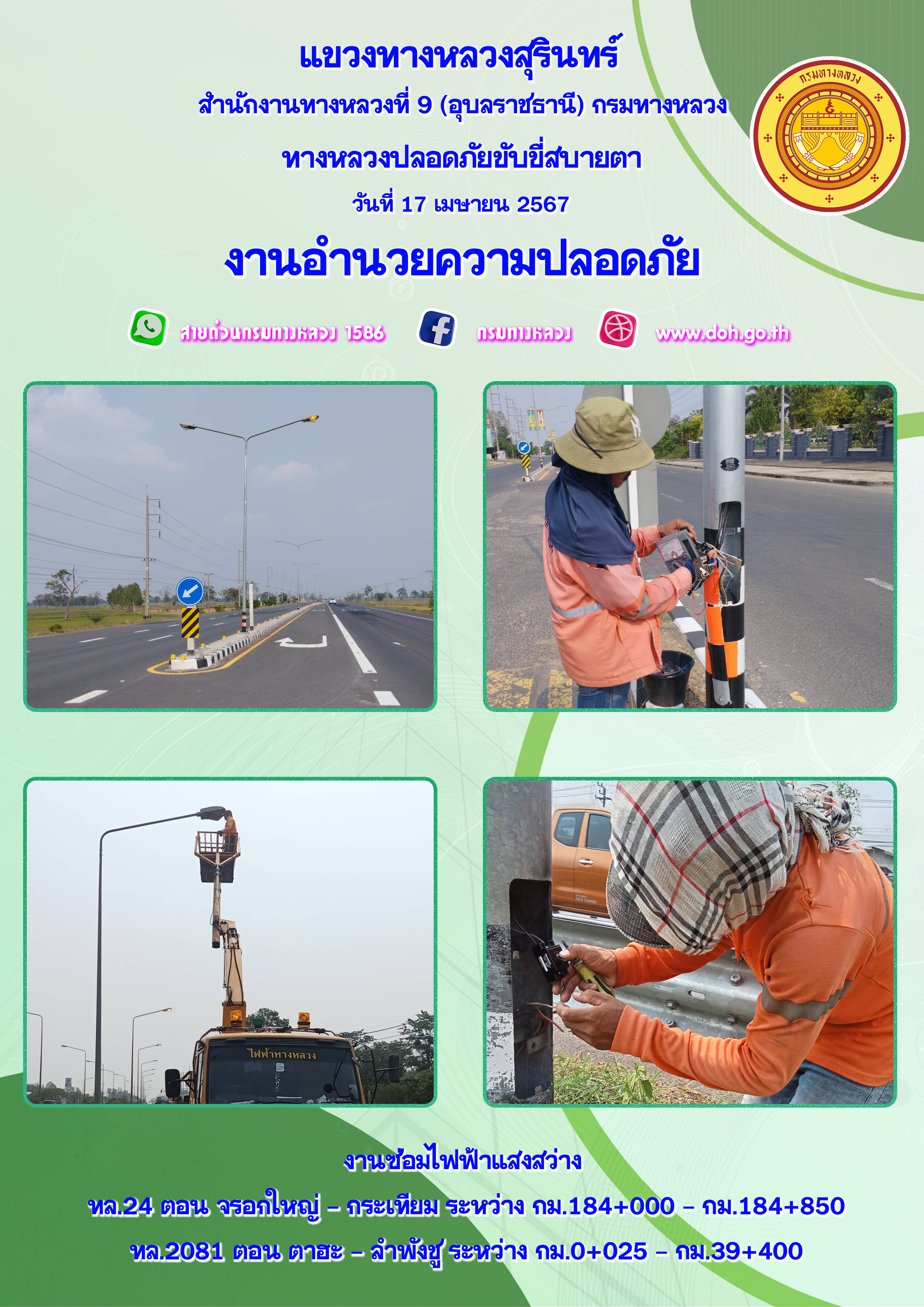 ข้อมูลภาพกิจกรรม : ทางหลวงปลอยภัย ขับขี่สบายตา 17 เมษายน 2567